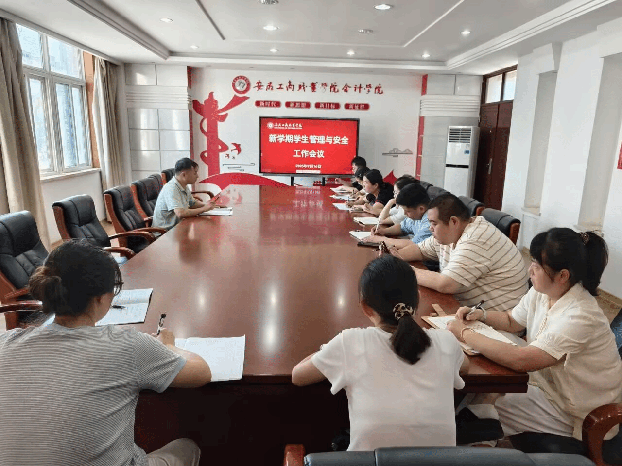 9月16日下午,会计学院在明德楼二楼党建会议室召开新学期学生管理与安全工作会议。学院党总支副书记李峰及全体专兼职辅导员参加会议。