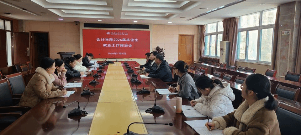 为扎实推进学院2026届毕业生就业工作,全面分析就业形势、精准部署下一阶段任务,会计学院于1月8日中午在明德楼学院会议室召开2026届毕业生就业工作推进会。学院党总支书记赵艳、副书记李峰及毕业班辅导员参与。