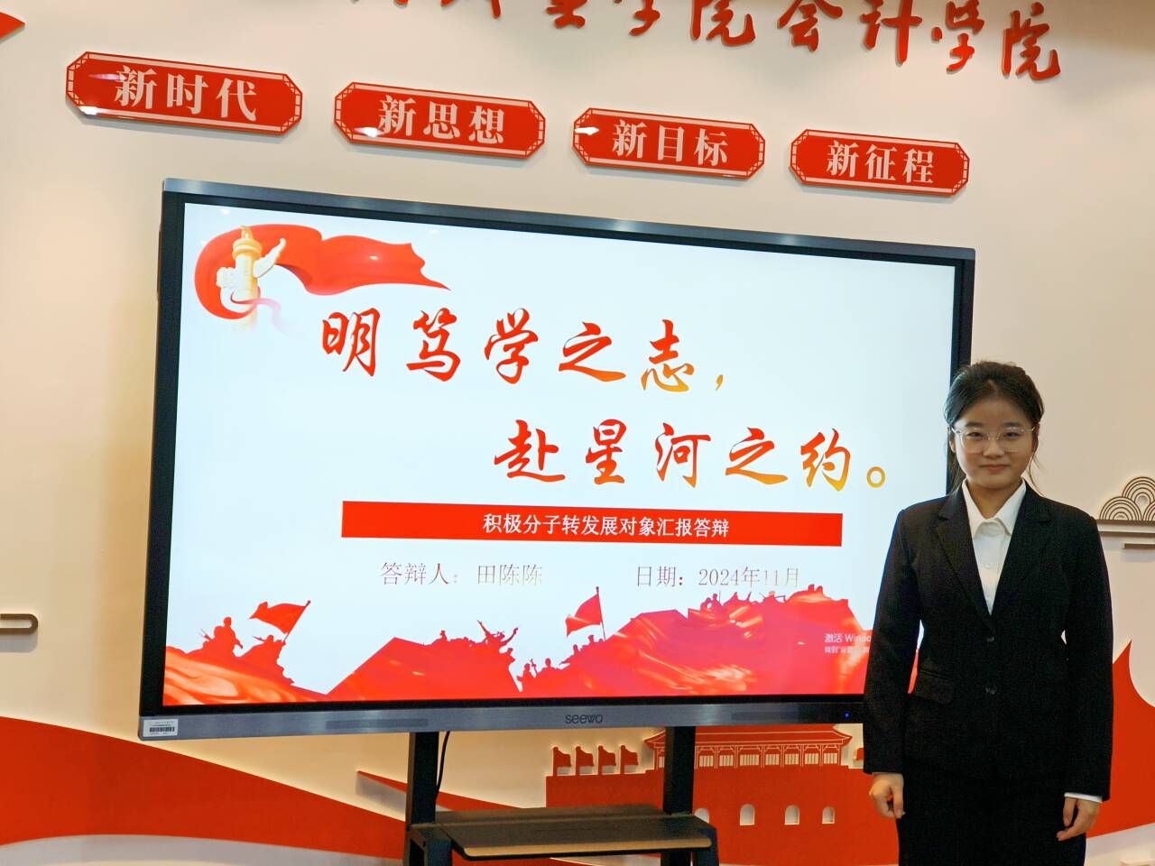本次答辩会议不仅加深了拟接收党员发展对象对理想信念的坚定,提升了其党性修养,而且为其成为合格的共产党员打下了坚实的基础。接下来,会计学院党总支将继续深化对党员发展对象的培育与教育工作,进一步执行党内外群众座谈、政审等程序,并积极引导他们通过实践活动深入学习党的理论和路线方针政策,坚守理想信念,不忘初心与使命,在学习、生活及工作中争做先进模范,为学院的事业发展贡献青春力量。(撰稿:余想花 审核:赵艳)