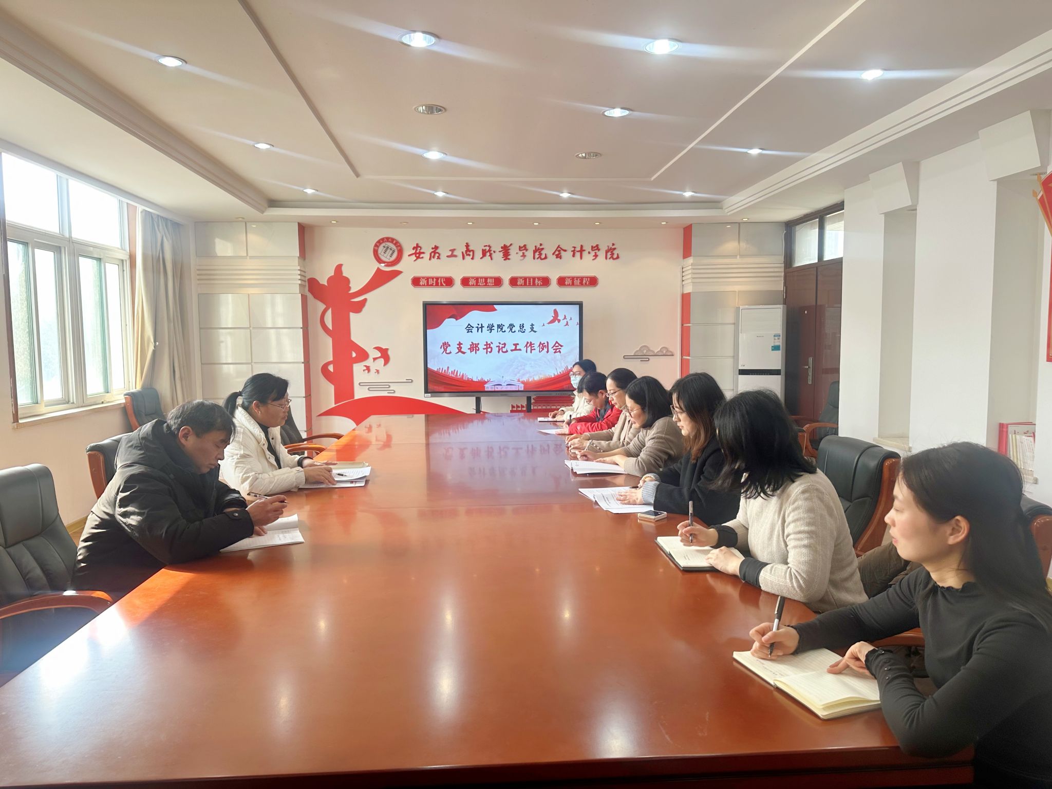 12月31日中午,会计学院党总支在明德楼二楼党建会议室召开了十二月份党支部书记工作例会。此次会议由党总支书记赵艳主持,党总支副书记李峰及全体党支部书记参加会议。