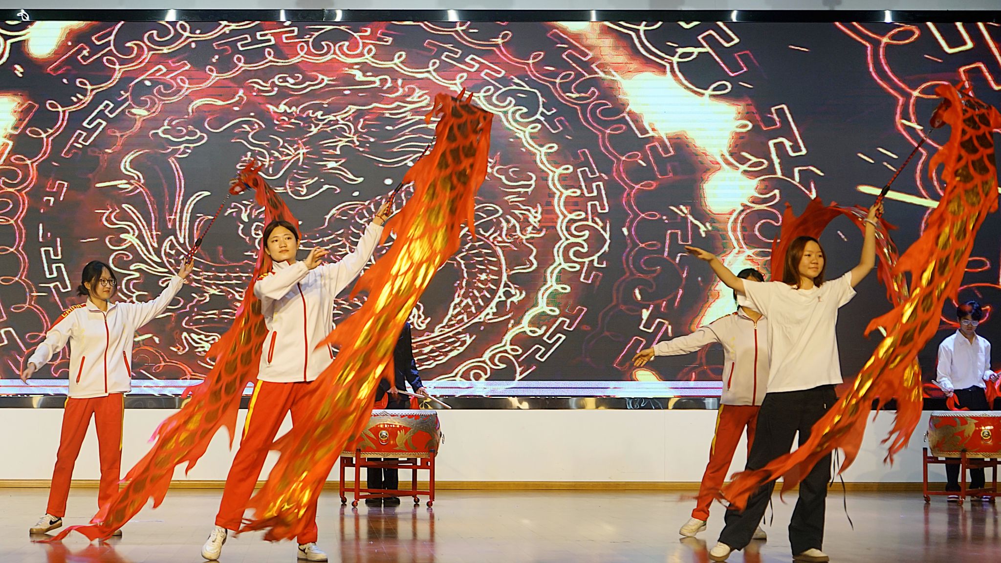 “绽放・青春华章” 环节将活动推向高潮。非遗节目《鼓跃龙旋》以震撼的传统鼓乐奏响文化自信强音,展现中华优秀传统文化独特魅力;诗朗诵《复兴路上的青春告白》,朗诵者们用铿锵有力的誓言,抒发对党的无限热爱与对祖国的美好祝福;历史情景剧《觉醒年代》生动还原革命先辈奋斗历程,带领观众穿越时空,感悟先辈们的革命精神;光影影子戏《百年征程,建党伟业》以创新形式回溯党的光辉历程,创意十足、令人印象深刻。此外,舞蹈《我们都是追梦人》、合唱《明天会更好》、朗诵《读中国》等节目,也充分彰显青年学子朝气蓬勃、积极向上的精神风貌,以青春活力诠释对未来的无限憧憬。