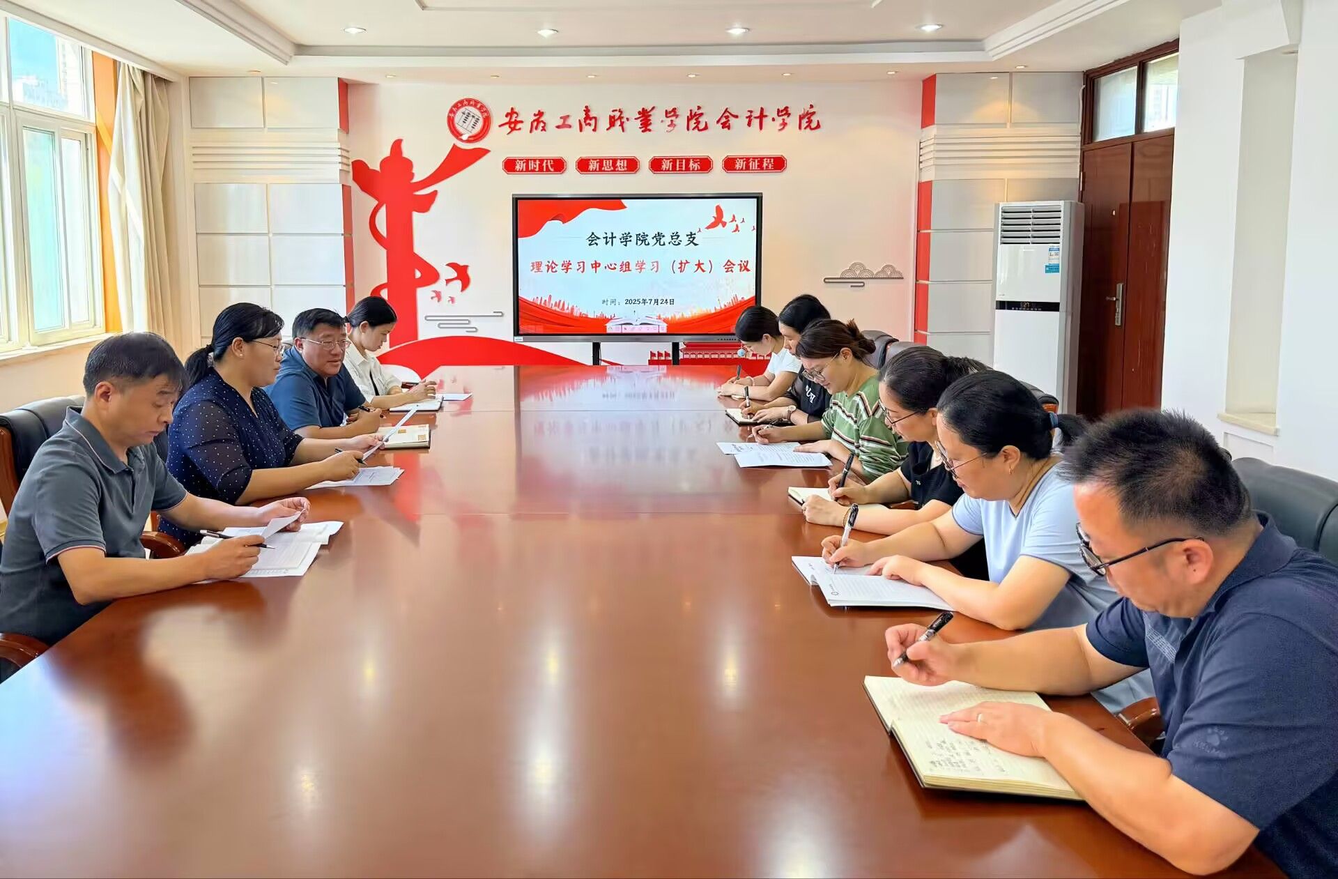 7月24日上午,会计学院党总支在明德楼二楼党建会议室召开7月理论学习中心组学习(扩大)会议。学院党总支委员、党支部书记、科室负责人参会,会议由党总支书记赵艳主持。