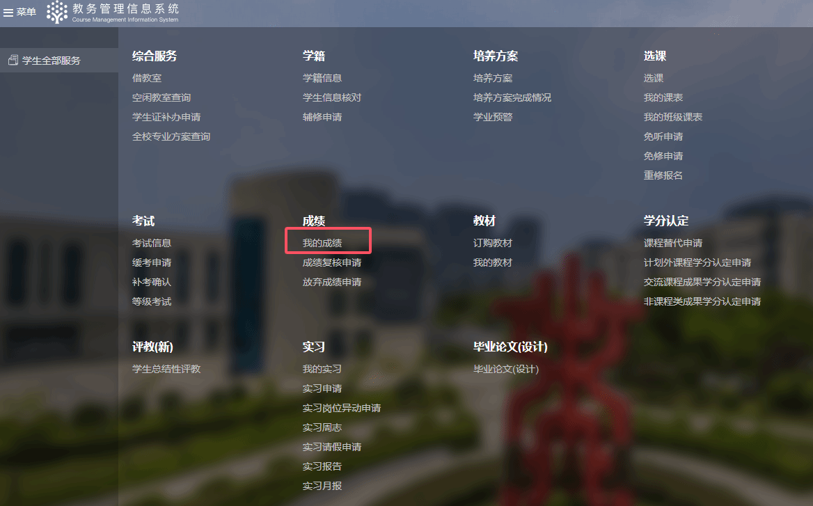 (二)核查平台:登录智慧教务系统,点击“我的成绩”。