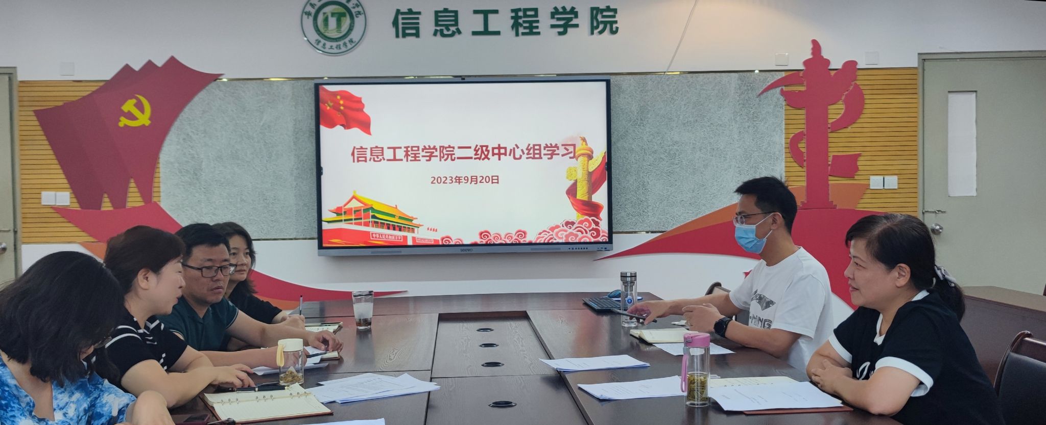 根据《信息工程学院党总支2023年二级中心组理论学习计划》,9月20日下午,信息工程学院党总支在党员活动室召开二级中心组学习会议。会议由党总支书记张静雯主持,全体党总支委员参加理论学习。