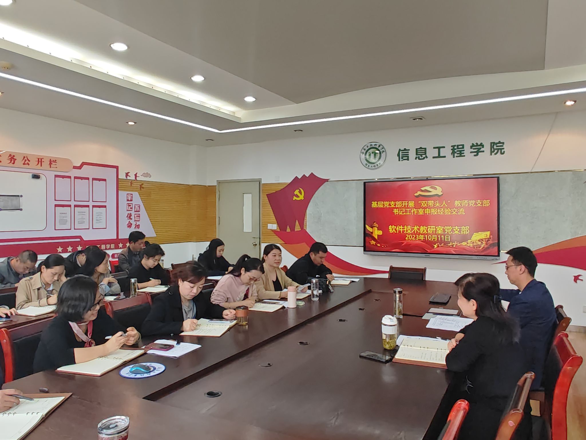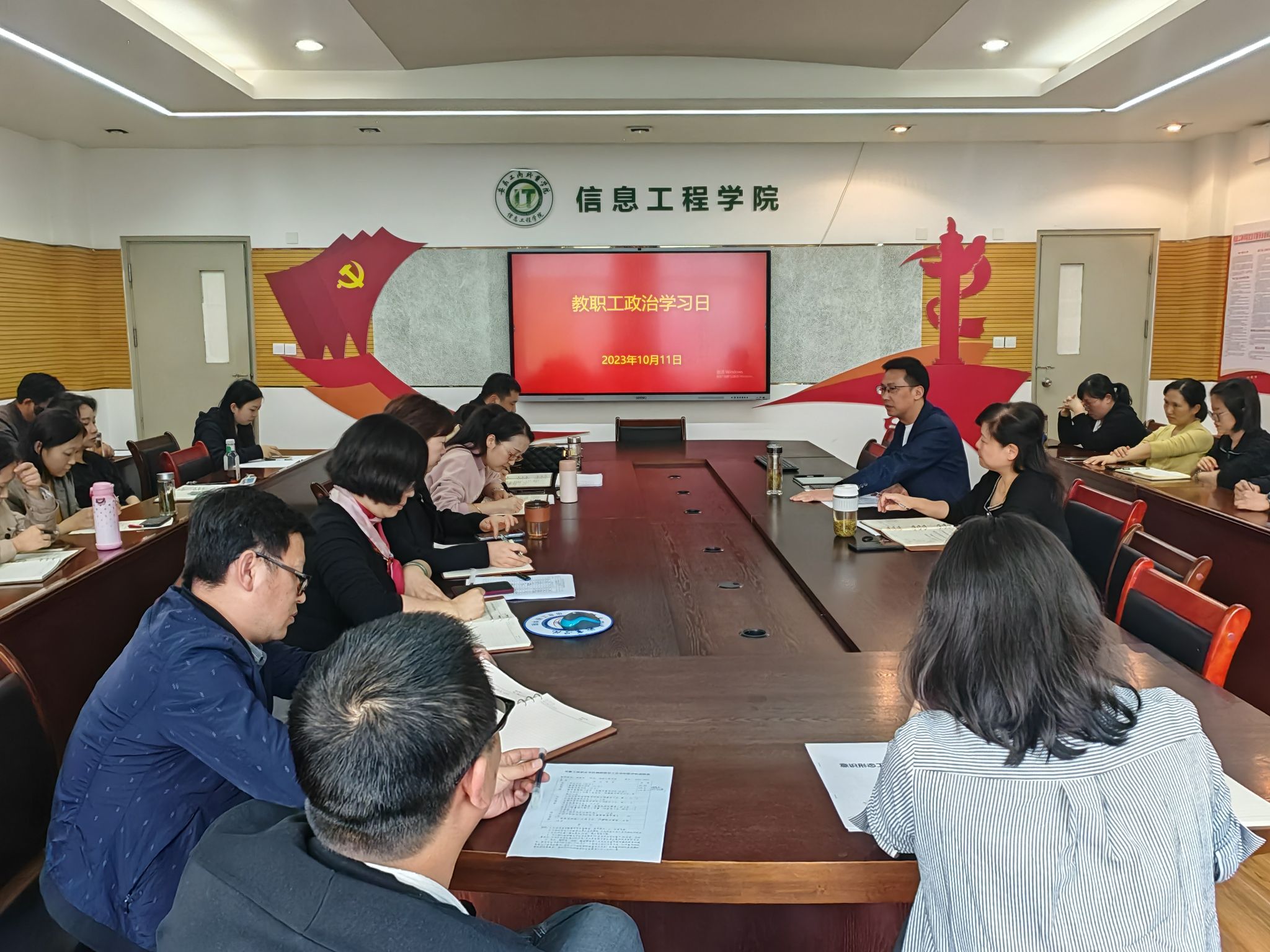 根据学校党委的统一部署,信息工程学院党总支于10月11日下午在党员活动室开展教职工政治学习日活动,学院全体教师参加了本次学习,活动由党总支书记张静雯主持。