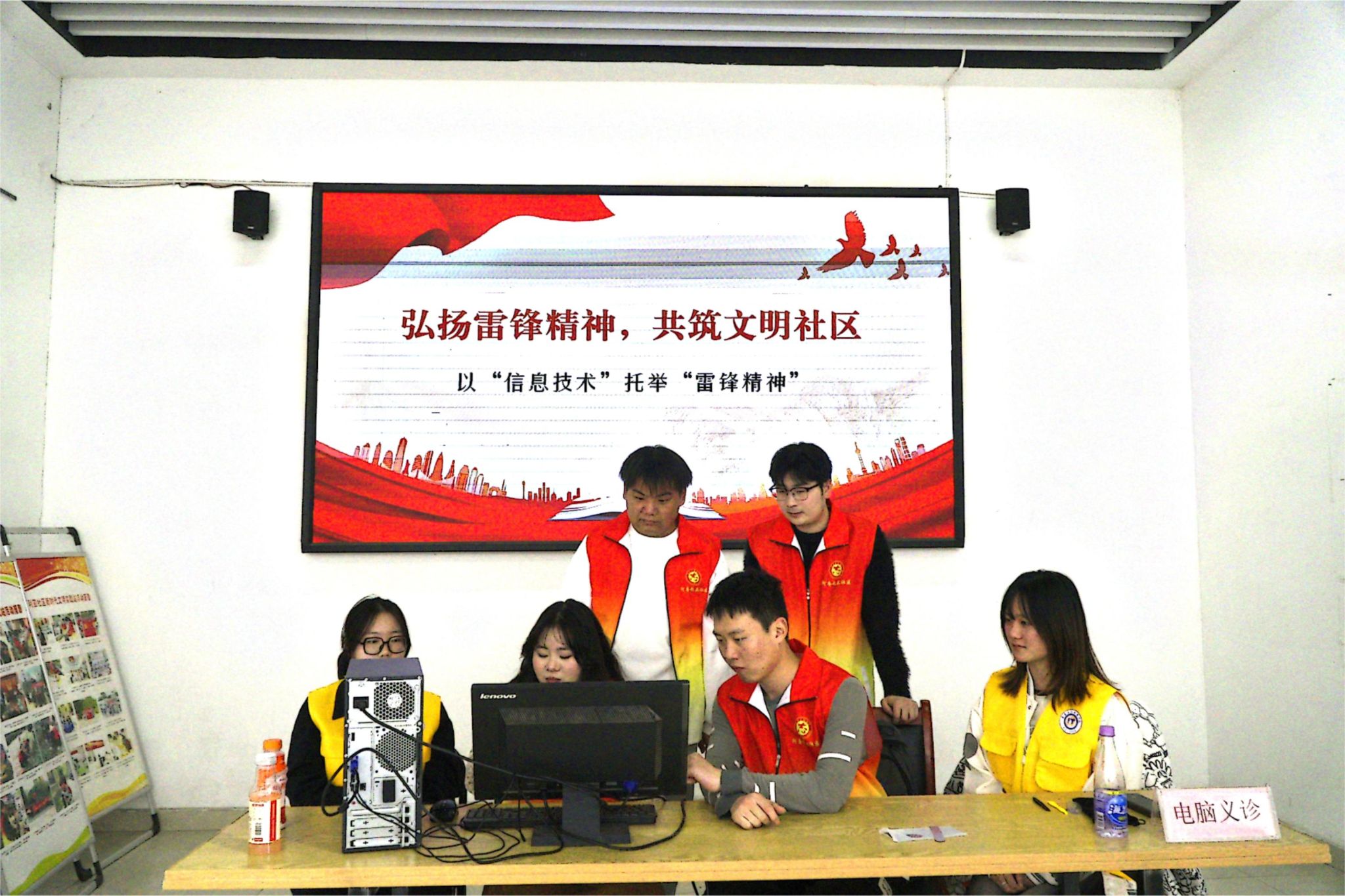 普及常识,“问诊”电脑。在电脑维修志愿服务活动现场,E新社志愿者们主动“问诊”,以饱满的热情和专业的技能为居民提供电脑硬件系统的清扫、软件系统的消杀以及系统优化等相关服务,精准地查找每一台电脑的问题并提供有效的解决方案,获得了居民的一致好评。