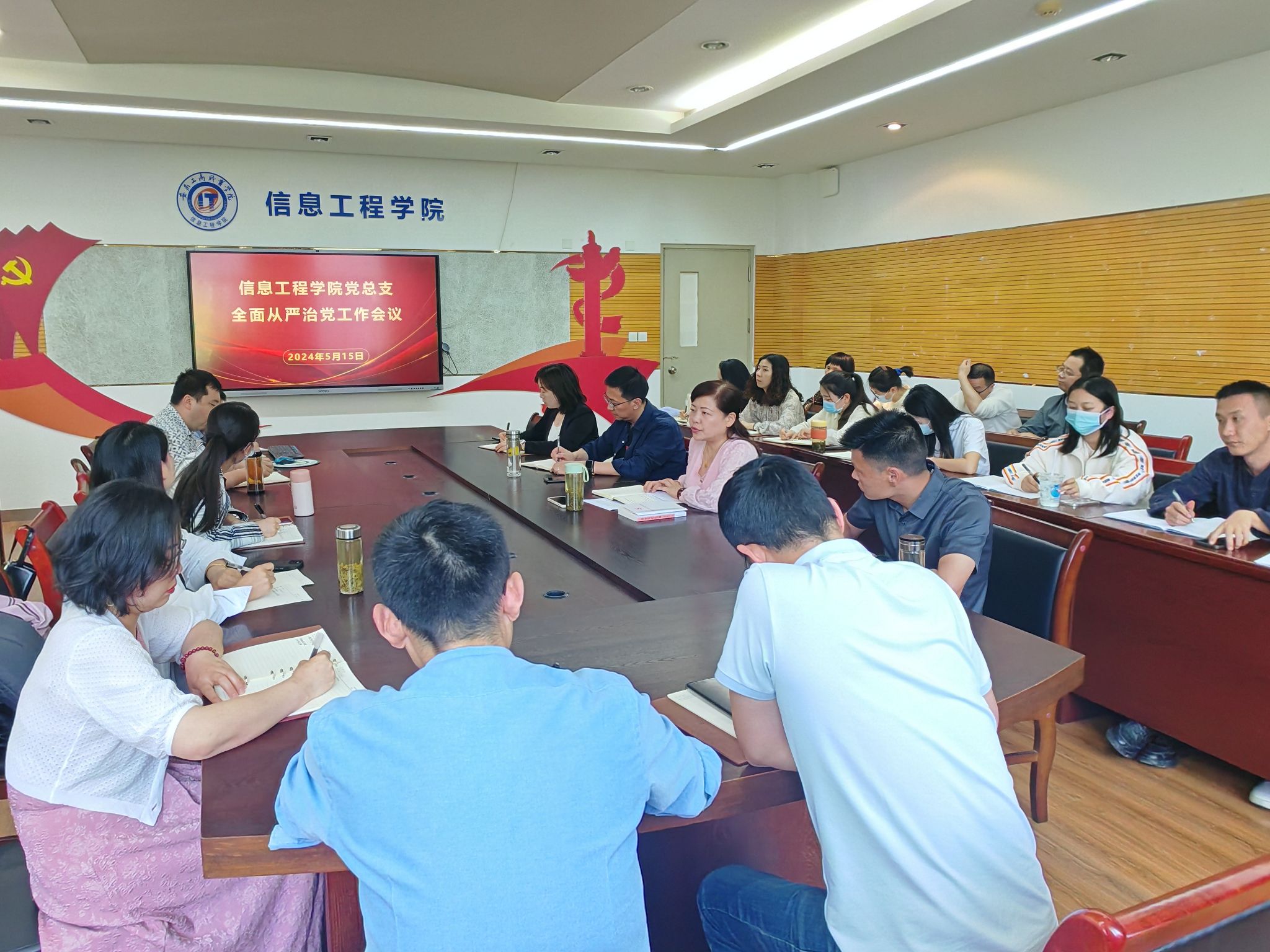 5月15日下午,信息工程学院党总支召开全面从严治党工作会议。党总支书记张静雯向全体教师党员传达了学校2024年全面从严治党工作会议精神,并领学了校党委书记齐建平《以自我革命精神纵深推进全面从严治党 为加快建设高水平高层次职业院校提供坚强保障》为题的讲话。