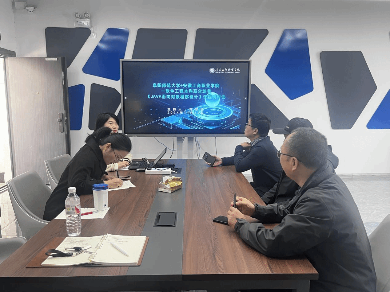 为进一步推进软件工程(专升本)联合培养专业建设,11月22日,软件技术教研室部分老师与阜阳师范大学孙刚、刘华明两位教授针对软件工程(专升本)联合培养专业设置的《JAVA面向对象程序设计》课程召开课程教学研讨会。