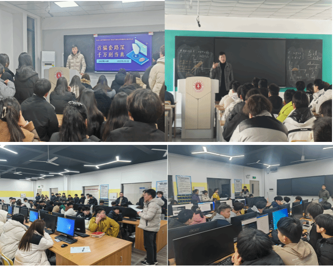 针对不同年级学生作息特点,为避免影响正常教学秩序,大一利用学生晚自习时段、大二及本科班利用中午及傍晚的时间开展集中宣传教育。宣讲过程中,陈夺要求全体学生“放下手机、抬头聆听”,通过真实诈骗案例还原、互动问答等形式,强化学生专注度与参与感。 宣讲会上,结合学校近期发生的刷单返利、虚假购物、网络交友诈骗等10种典型案例,逐一拆解诈骗分子话术套路与心理操控手段。例如,针对学生群体高发的“游戏账号交易诈骗”,详细揭示“低价充值”“装备代购”等陷阱背后的资金流转漏洞,引导学生识别“馅饼”背后的“陷阱”。同时,他反复强调“四不原则”:不轻易转账、不泄露个人信息、不点击不明链接、不贪图小利,要求学生将反诈意识融入日常生活。
