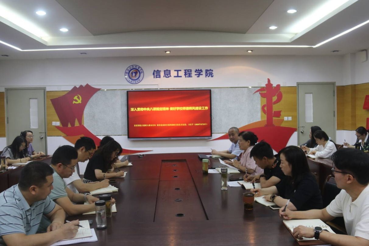 6月4日下午,校党委委员、组织人事处处长刘浩以《深入贯彻中央八项规定精神 做好学校师德师风建设工作》为题,为信息工程学院全体教师讲授深入贯彻中央八项规定精神学习教育专题党课。