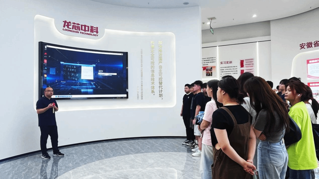 在参观学习过程中,同学们收获颇丰。他们清晰地了解到龙芯中科的发展脉络,并深刻领悟到其“为人民做龙芯”的根本宗旨。龙芯中科作为信创企业,致力于信息技术国产化,为国家信息化建设贡献核心力量。这种使命担当为同学们树立了榜样,让他们真切感受到科技自立自强的强大力量,激励同学们为我国科技发展贡献自己的力量。(撰稿:朱同悦 初审:朱同悦 复审:黄梅娟 终审:范生万)