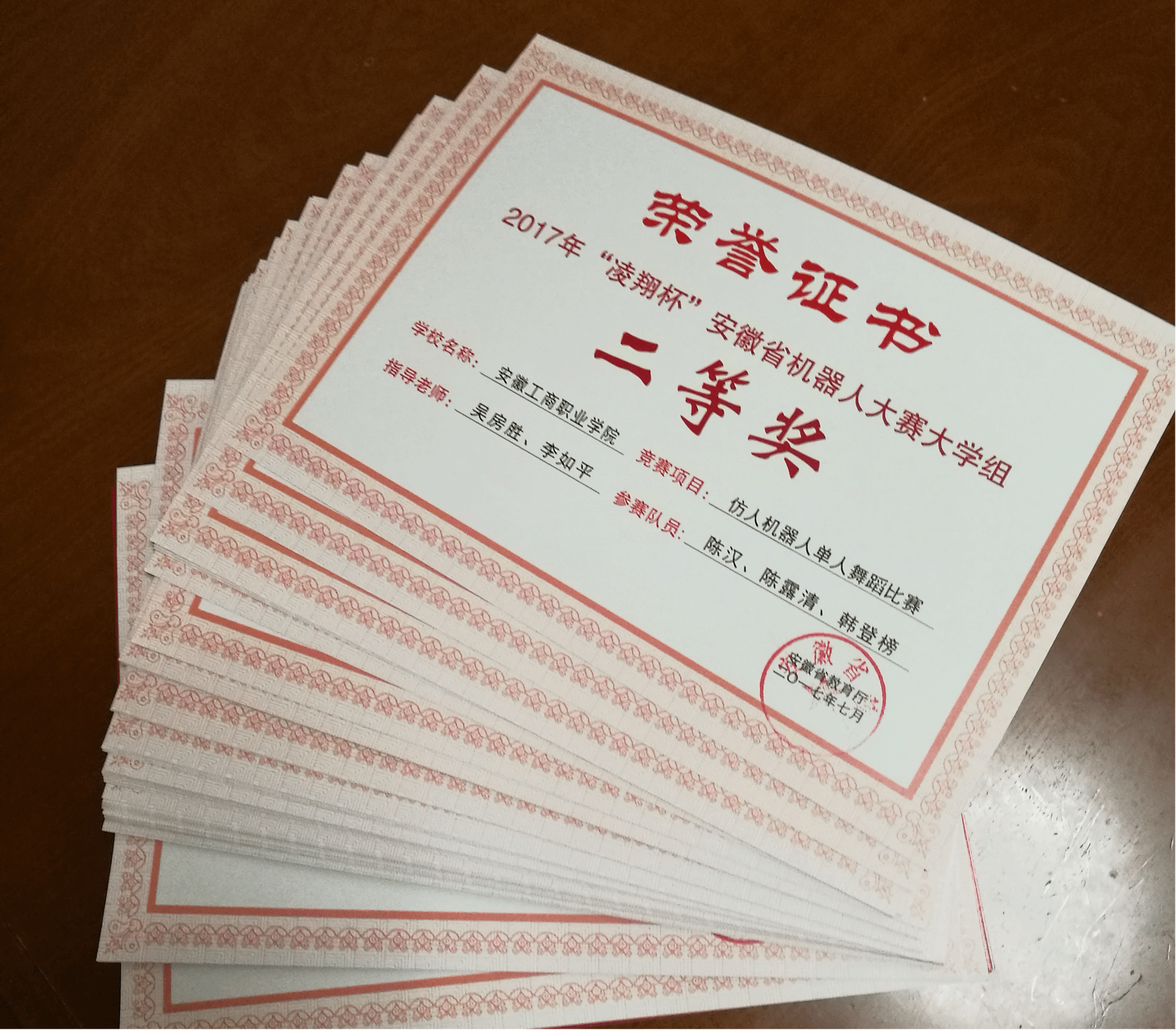 2017年安徽省“机器人大赛”赛项二等奖两项、三等奖一项;