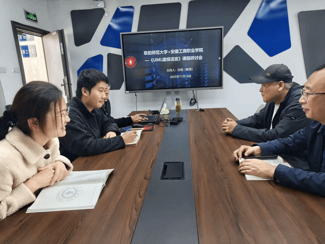 为进一步深化软件工程(专升本)联合培养专业课程建设,提升教师在系统分析与建模方向的教学能力,阜阳师范大学与安徽工商职业学院于11月14日共同举办了《UML建模语言》集体备课交流会。本次交流会邀请了阜阳师范大学孙刚教授主持,参会人员还包括阜阳师范大学刘华明教授和我校软件技术教研室部分老师。