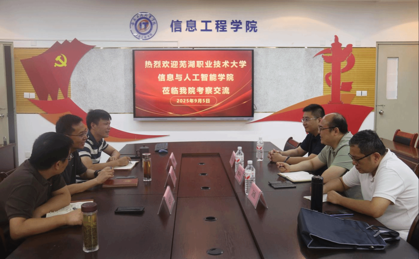 9月5日上午,芜湖职业技术大学信息与人工智能学院副院长唐贤传一行莅临我院,专题调研人工智能技术应用专业建设及人工智能训练师实训室建设经验。院长范生万、党总支副书记陈夺及相关工作人员热情接待并参与座谈交流。