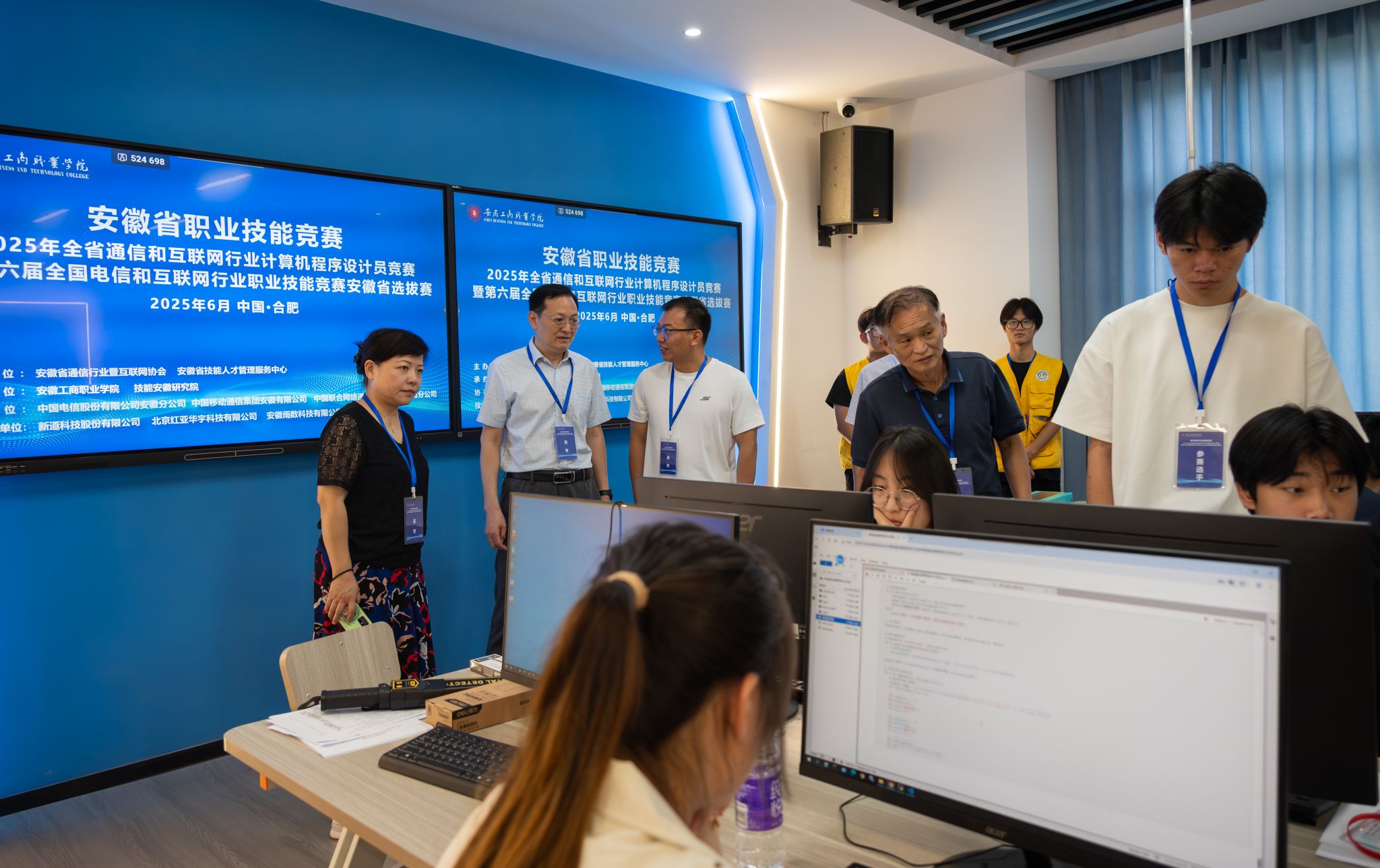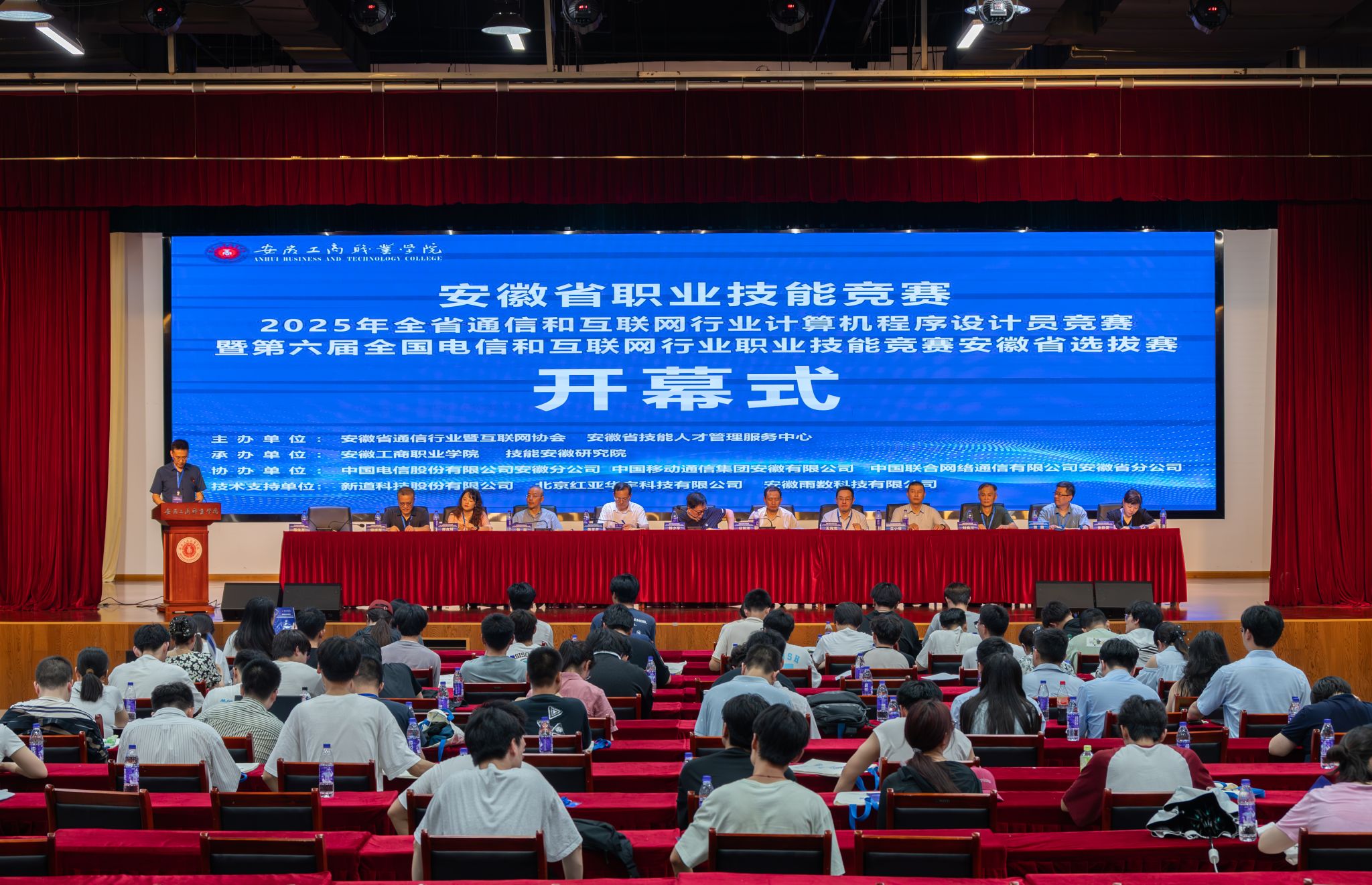 2025年6月14日至15日,2025年安徽省通信和互联网行业计算机程序设计员竞赛暨第六届全国电信和互联网行业职业技能竞赛安徽省选拔赛在安徽工商职业学院隆重举行。本次大赛由安徽省通信行业暨互联网协会携手安徽省技能人才管理服务中心共同主办,安徽工商职业学院及技能安徽研究院承办,并得到了中国电信股份有限公司安徽分公司、中国移动通信集团安徽有限公司、中国联合网络通信有限公司安徽省分公司的大力支持与协办。