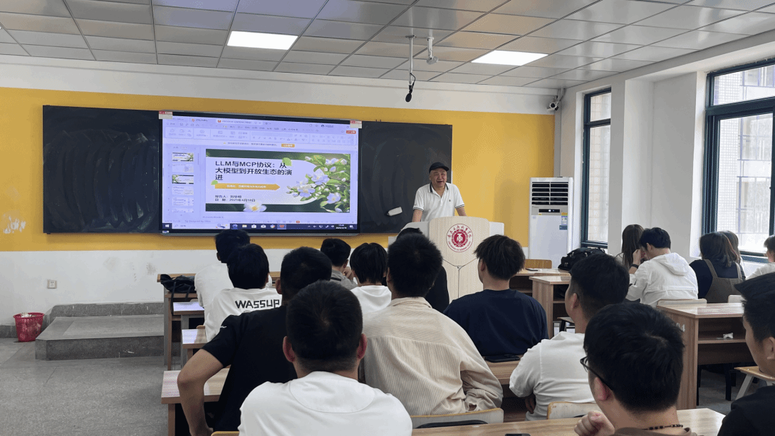 软件教研室邀请阜阳师范大学刘华明教授为软件工程(专升本)专业联合培养的同学们开展学术专题讲座——LLM与MCP协议:从大模型到开放生态的演进。毕业季,各教研室已陆续安排企业专家来校做专业讲座。