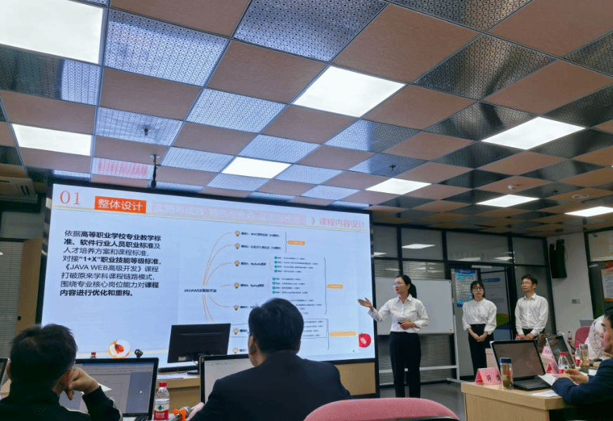 各教研室以教师教学能力大赛为载体,灵活开展说课活动,重在促进教学反思和经验交流,聚焦教学目标设计、教学策略优化与课堂掌控能力提升。软件、计算机网络、物联网等教研室通过说课活动,遴选出队伍参加了校级教师教学能力大赛,目前软件教研室的一支队伍已进入省赛备赛阶段。动漫教研室组队在安徽省职业院校技能大赛(高职组)“课程思政教学竞赛”赛项获三等奖。