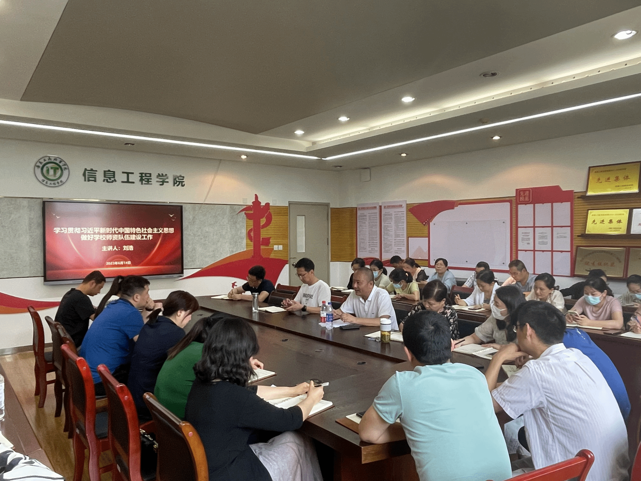 6月14日中午,校党委委员、组织人事处处长刘浩为信息工程学院全体教职工讲授主题教育专题党课。