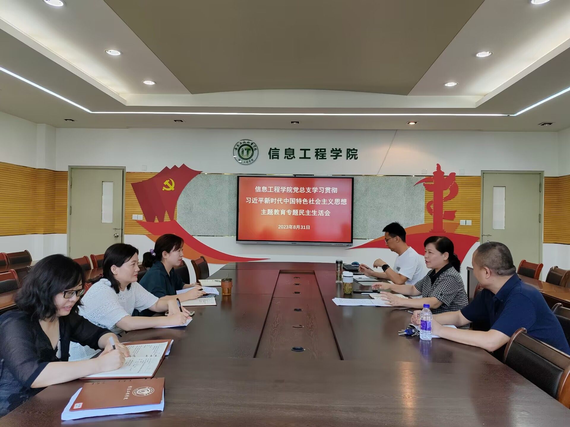 根据院党委《关于召开学习贯彻习近平新时代中国特色社会主义思想主题教育专题民主生活会的通知》的精神和统一部署,8月31日下午,信息工程学院党总支召开学习贯彻习近平新时代中国特色社会主义思想主题教育专题民主生活会。院党委委员、组织人事处处长、我院联系领导刘浩到会指导,全体党总支委员参加会议,会议由党总支书记张静雯主持。