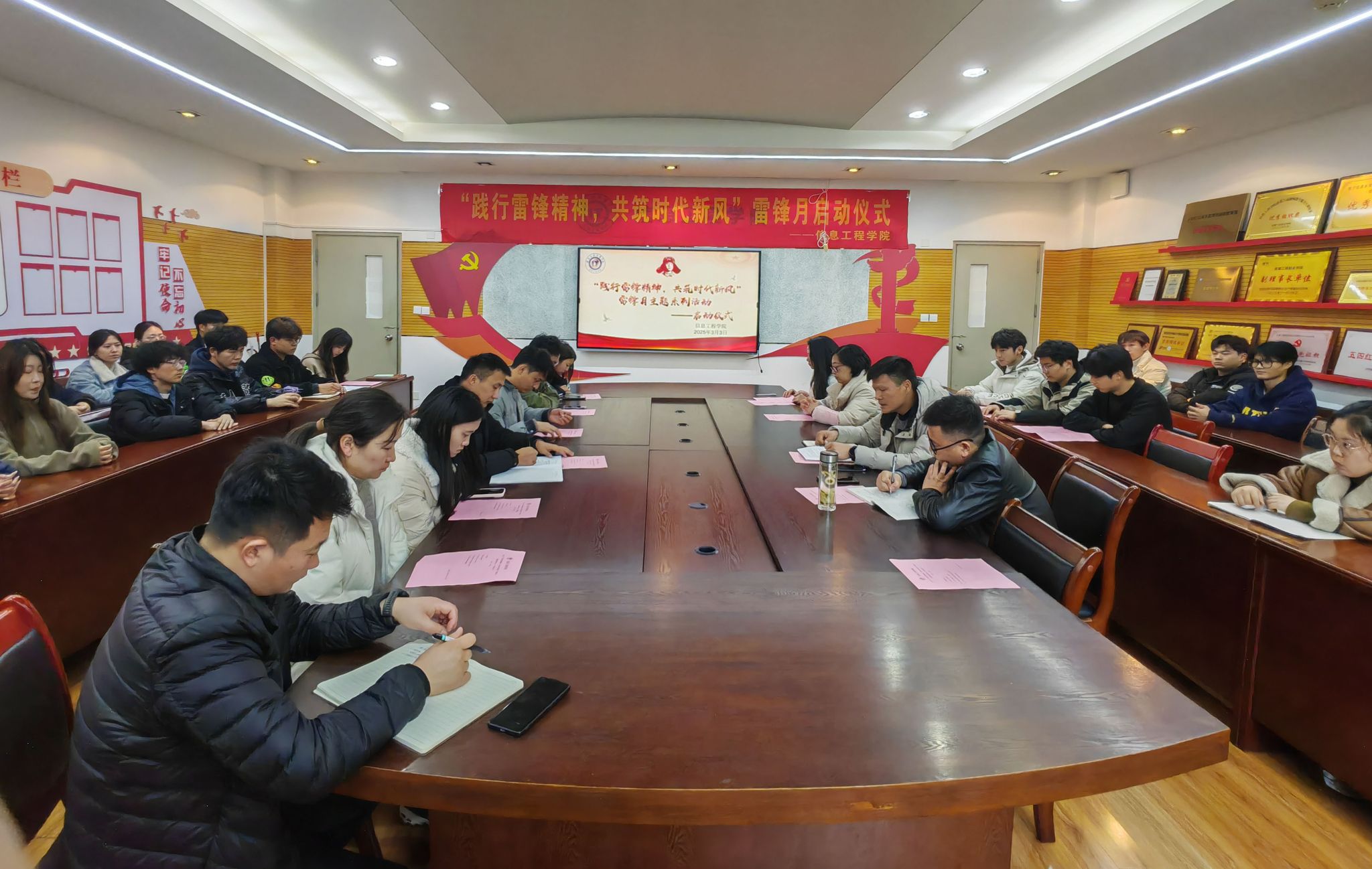 伴随着《学习雷锋好榜样》的激昂旋律,信息工程学院学雷锋志愿服务月活动正式拉开帷幕。启动仪式结束后,学院青年志愿者们开展了雷锋月主题系列活动之一:“书香‘锋’范”读书分享会,同学们踊跃发言,交流心得,立志通过实际行动贯彻雷锋精神,努力做到德智体美劳全面发展,成为合格的新时代接班人。