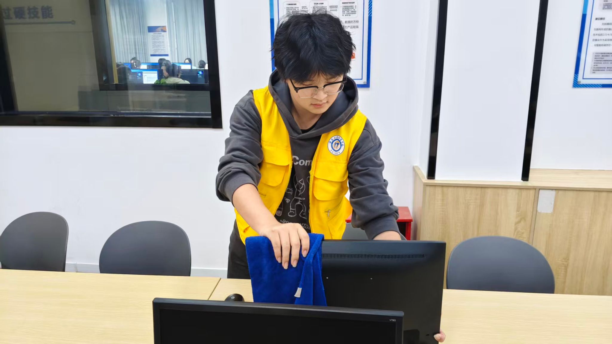 为推动劳动教育与专业能力培养、综合素质提升相结合,学院分层推进校园劳动实践活动。围绕教学环境优化,组织学生对教学楼、实训室开展环境整治,协助完成设备维护、资料整理等工作,在实践中强化专业认知与动手能力;以“文明校园共建”为抓手,引导学生参与校园公共区域清洁,在体力劳动中增强体魄与协作意识。