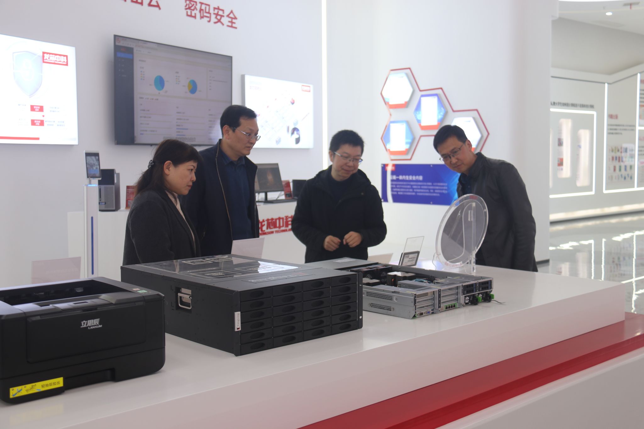 在实地走访中,龙芯中科(合肥)技术有限公司总经理彭飞首先向陈章奇一行介绍了企业的发展历程,参观了企业成果展览馆,座谈会中,彭飞主要介绍了企业的业务范围,未来发展和岗位资源等情况,结合当前信息技术应用创新产业发展,彭飞认为未来该产业人才需求将大大提升,希望我校能够精准对接行业企业岗位需求,培养更多信息技术应用创新类人才,助力行业企业未来发展。