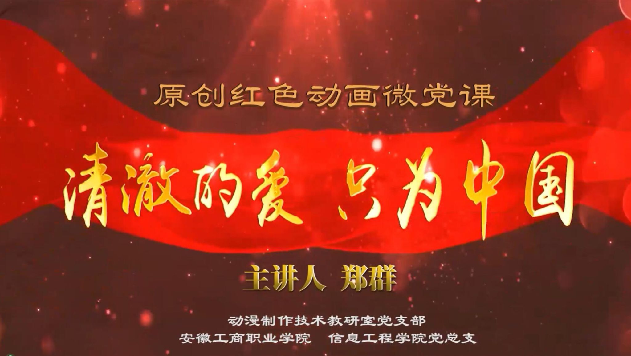 为深入学习贯彻习近平新时代中国特色社会主义思想和党的二十大精神,巩固拓展主题教育成果,持续深化“党课开讲啦”活动,安徽工商职业学院举办了第二届微党课评选。由动漫制作技术党支部策划报送、郑群同志主讲的微党课《“清澈的爱 只为中国”原创红色动画微党课》凭借其创新的形式内容和深刻的思想内涵,荣获一等奖(第一名),并被推荐参加安徽省微党课评选。