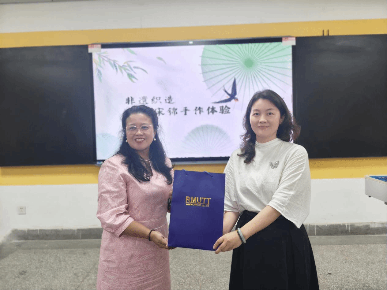 动漫制作技术教研室党支部以宋锦为媒,将中华传统文化的种子播撒在异国师生心间,不仅让泰国皇家理工大学的师生们亲身感受到了中国非遗文化的魅力,更增进了中外文化的交流与理解,为国际友谊搭建起了一座绚丽多彩的文化桥梁。(撰稿:杨静 初审:杨静 复审:陈夺 终审:张静雯 )
