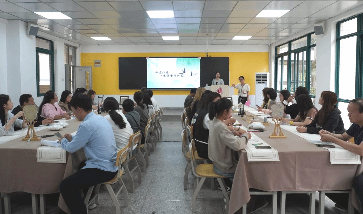 活动伊始,杭梅老师向泰国师生们详细介绍了宋锦文化。宋锦,作为中国传统的丝制工艺品,有着悠久的历史和深厚的文化底蕴,与南京云锦、四川蜀锦并称中国三大名锦。它起源于宋代,因其独特的技艺和精美的图案,在明清时期更是成为宫廷专用之物,象征着尊贵与典雅。老师们通过精美的图片和生动的讲解,让泰国师生们仿佛穿越时空,领略到宋锦在历史长河中的独特魅力。