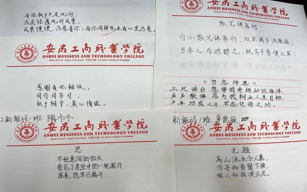 在生命的旅程中,总有一些人陪我们共经风雨,帮我们渡过难关。他或许是我们的父母,或许是我们的师长,或许是我们的朋友,同学们将心中的情谊化作切切三行,从字里行间流露的情感或饱含思念,或充满感恩。精炼的三行情诗表达了对党和祖国、对父母、对老师、对朋友真挚的爱,蕴含着青春理想,充满着时代担当。