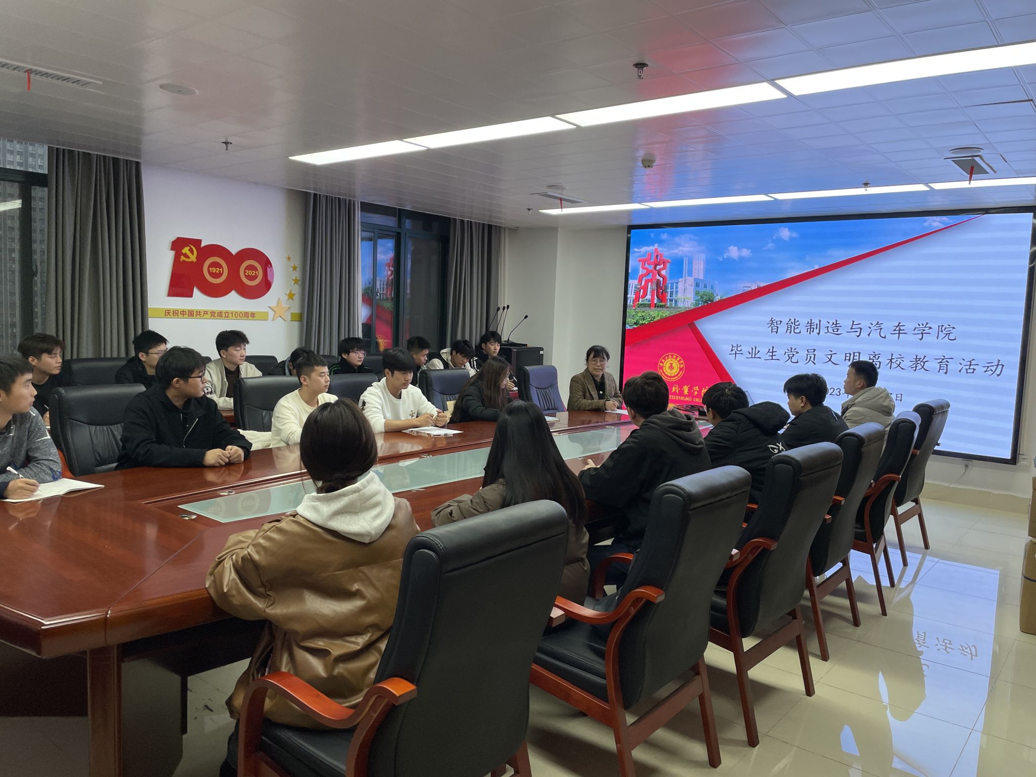 为深入学习贯彻习近平新时代中国特色社会主义思想,落实立德树人根本任务,激励全体毕业生党员坚定信念,牢记党员身份、担当作为,以良好的精神风貌踏入新的征程,11月27日下午,智能制造与汽车学院举行毕业生党员离校专题教育。学院组织员刘婷婷、学生第二党支部书记柯主及全体毕业生党员参加了活动。