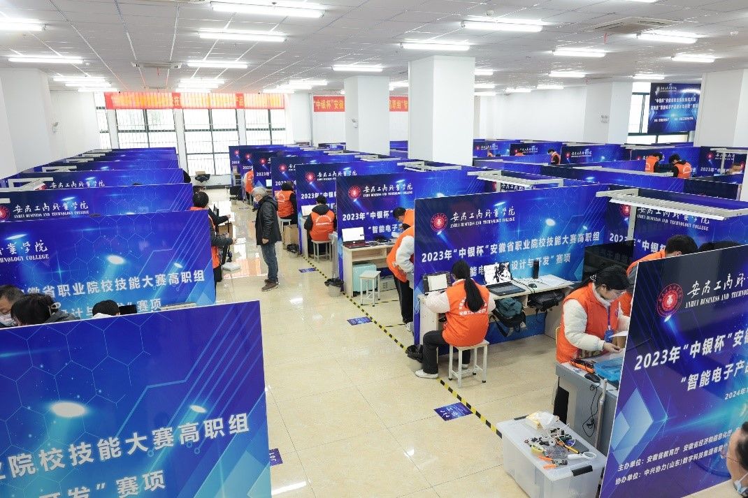 2024年1月5日-6日,由安徽省教育厅、安徽省人力资源和社会保障厅、安徽省经济和信息化厅主办,我校承办的2023年“中银杯”安徽省职业院校技能大赛“智能电子产品设计与开发”赛项圆满结束,共有来自全省19个学校的132名选手参赛。