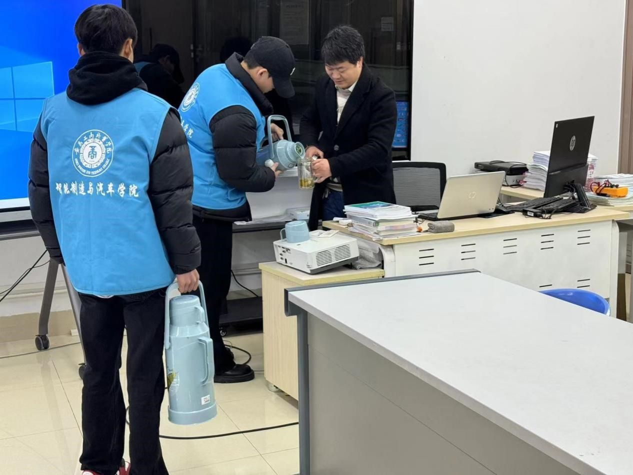 “青春志愿行”雷锋月活动启动以来,智能制造与汽车学院实训楼内总有一群身穿“蓝马甲”的志愿者穿梭于教室之间,他们带着饱满的激情、热情的微笑,一声“老师,您辛苦了,请让我们为您添上些热水”,用他们手上的热水瓶为辛勤奉献的教师送去一份温暖,用亲身实践传扬雷锋精神。