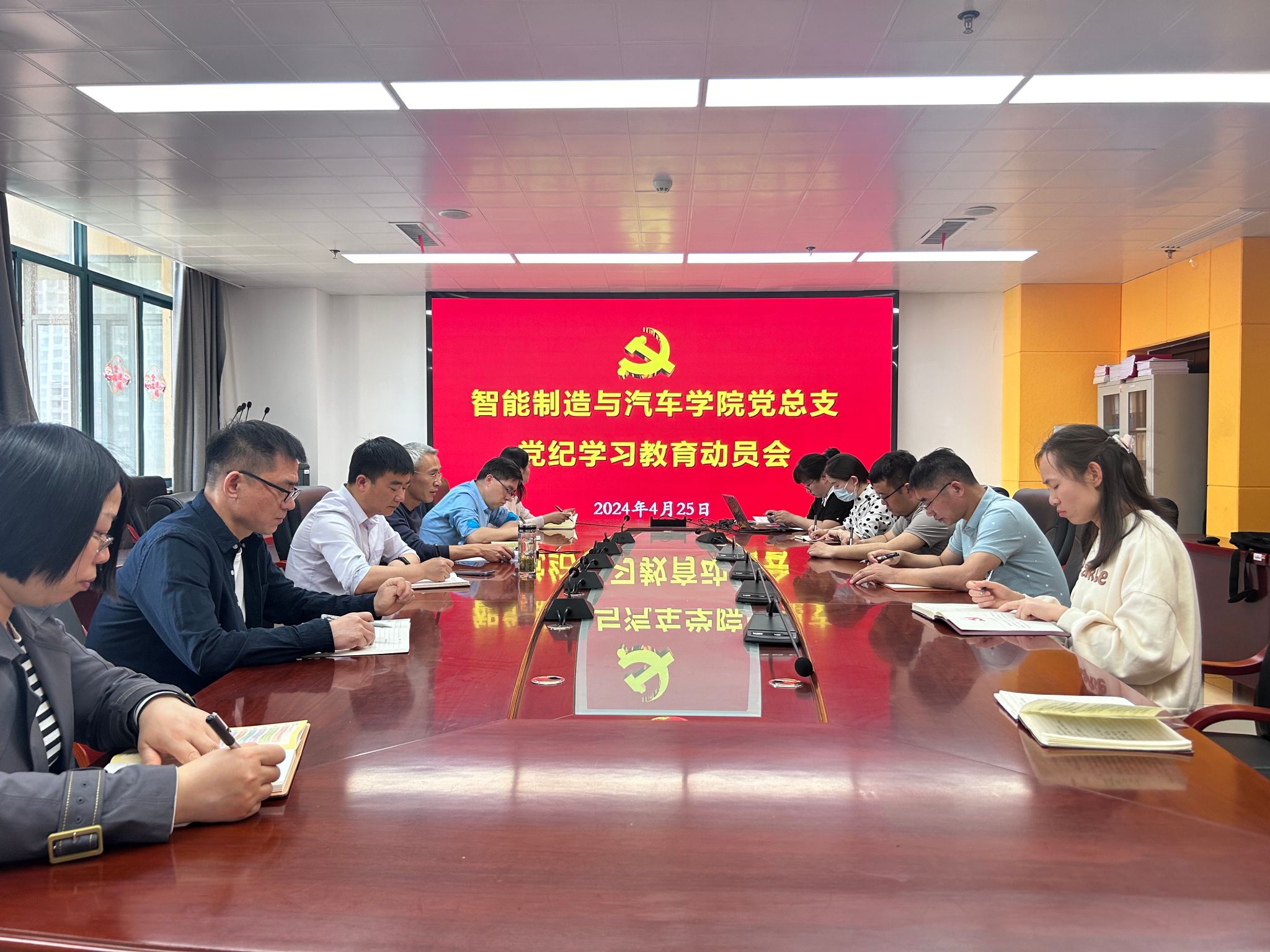 4月25日,智能制造与汽车学院党总支召开党纪学习教育动员会,党总支委员、支部书记及支部委员参加,会议由学院党总支书记丁浩主持。
