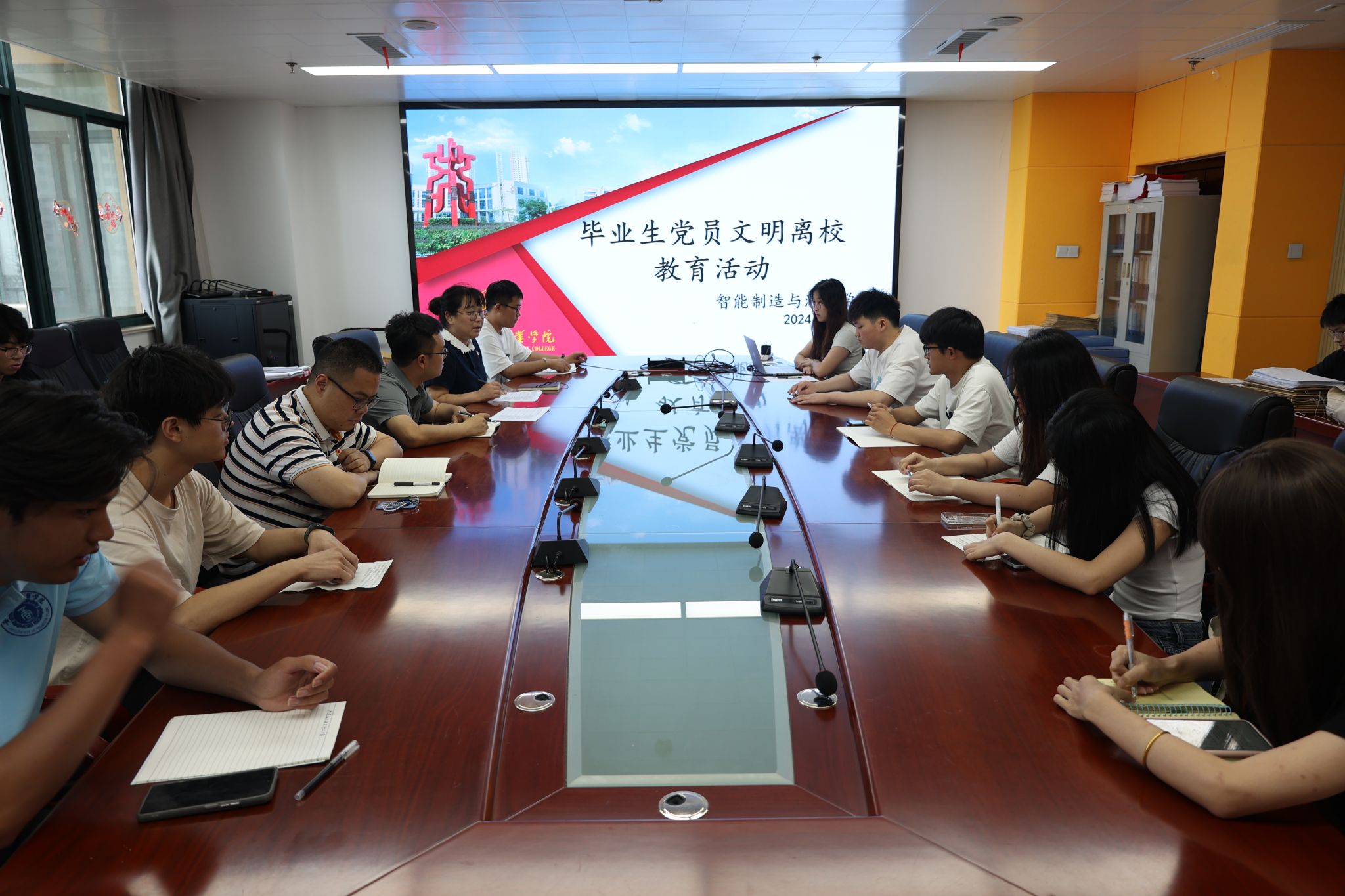 为深入学习贯彻习近平新时代中国特色社会主义思想,落实立德树人根本任务,激励全体毕业生党员坚定信念,牢记党员身份、担当作为,以良好的精神风貌踏入新的征程,6月30日下午,智能制造与汽车学院举行毕业生党员离校专题教育。学院组织员刘婷婷、学生第二党支部书记柯主、学生第一党支部支委杨东及全体毕业生党员参加了活动。
