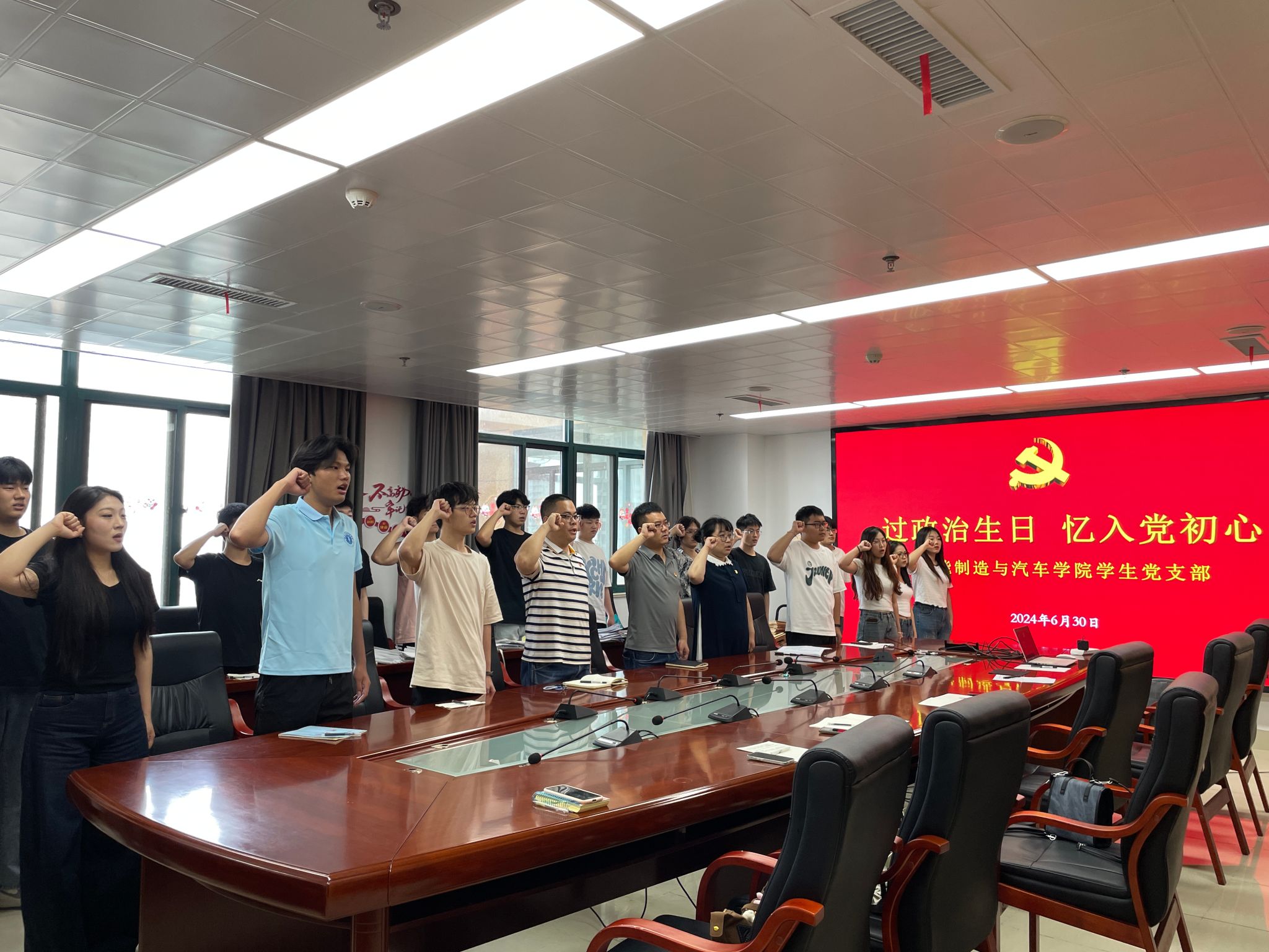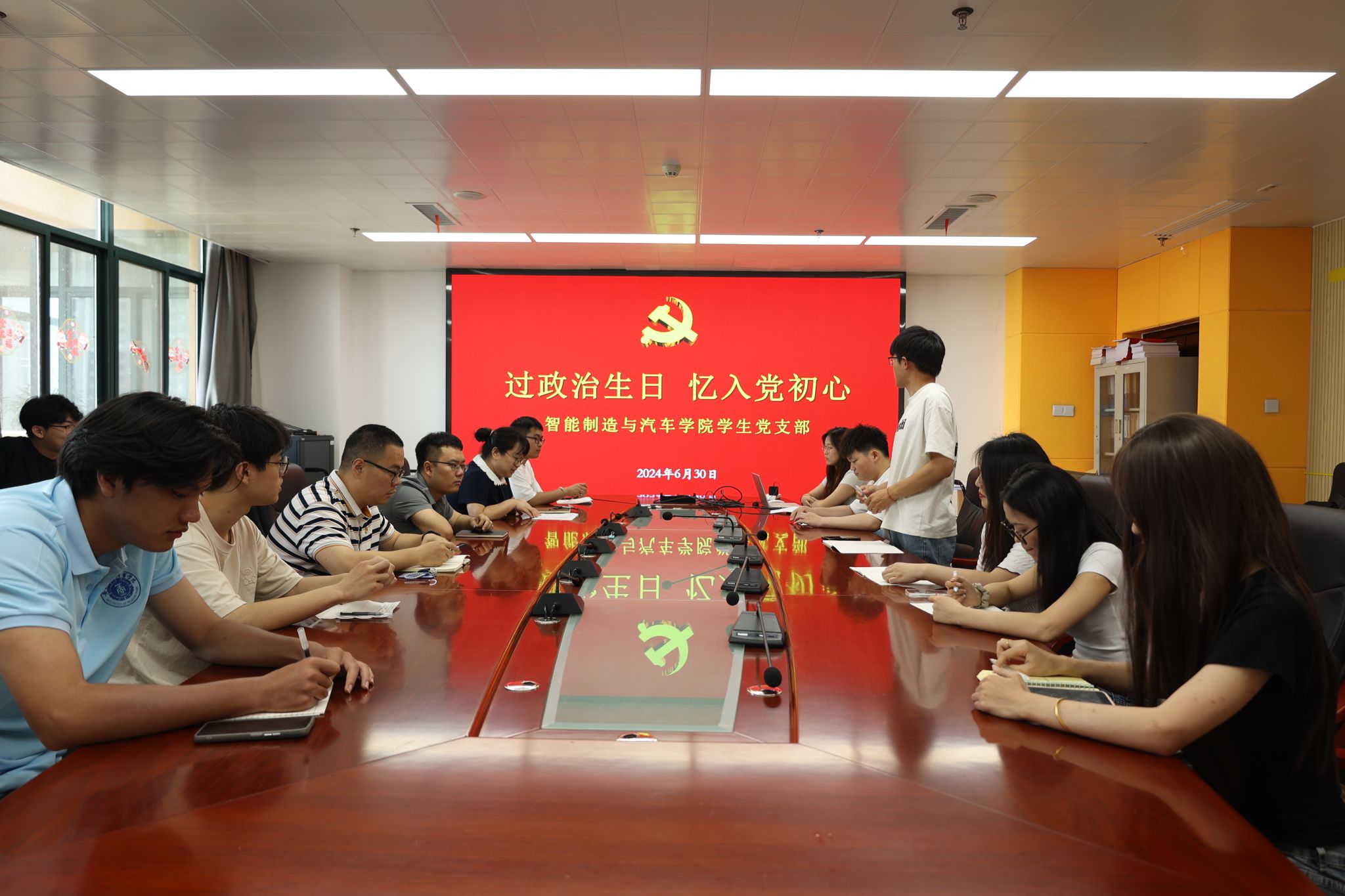 为进一步引导青年党员筑牢信仰之基,补足精神之钙,增强党员的责任感和使命感,提升党支部的凝聚力、向心力和战斗力,2024年6月30日,智能制造与汽车学院学生党支部分别召开了“重忆入党初心 重温入党誓词”主题党日活动,本次活动由学院组织员刘婷婷主持,学生第二党支部书记柯主、学生第一党支部支委杨东及本次过政治生日的党员同志参加本次主题党日活动。