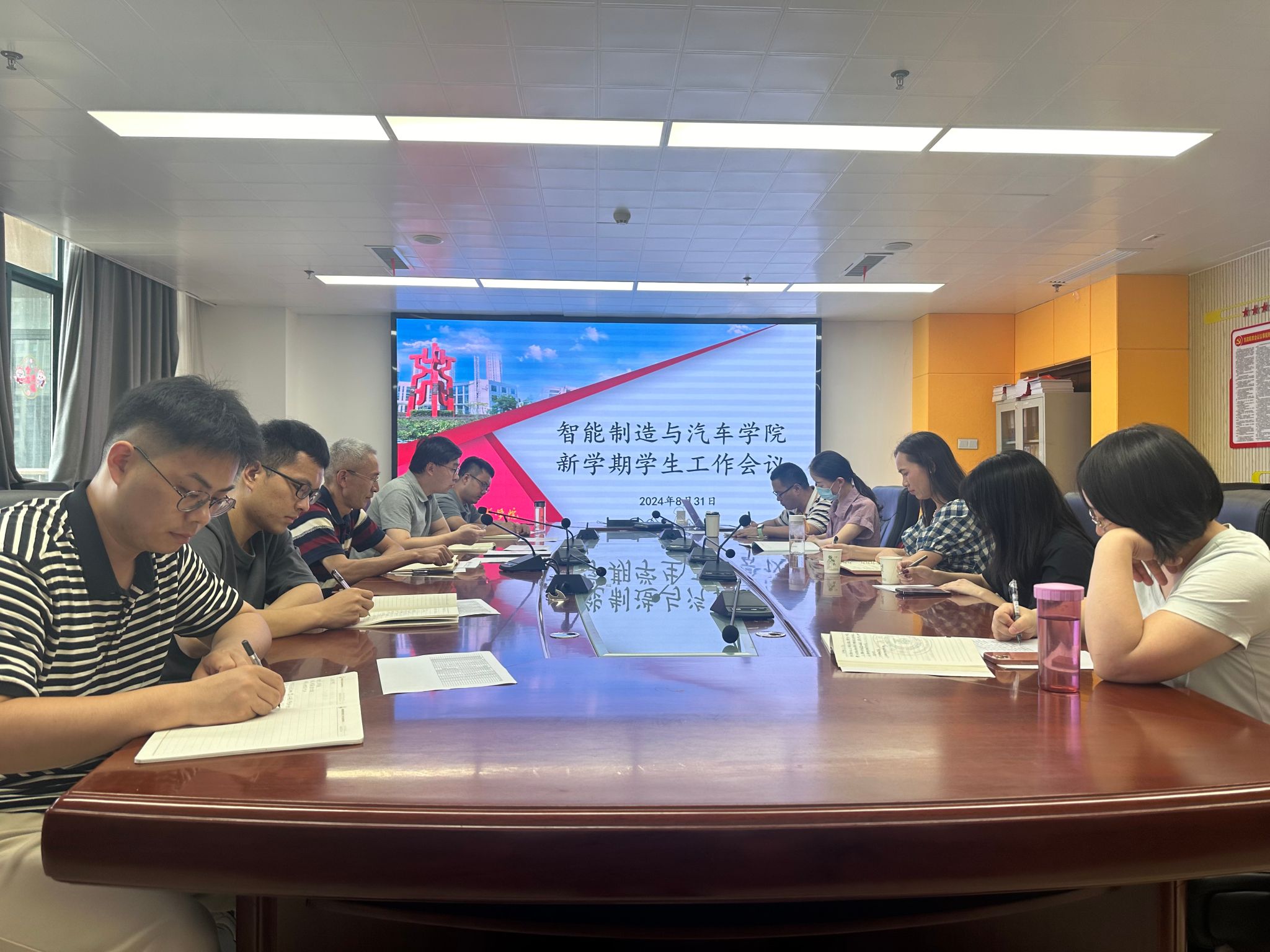 为了进一步明确新学期的工作目标和做好新学期各项学生工作,8月31日,智能制造与汽车学院在第六会议室召开辅导员工作会议。会议由学院党总支书记丁浩主持,学院党总支副书记盖昊宇和学院全体专兼职辅导员参加会议。