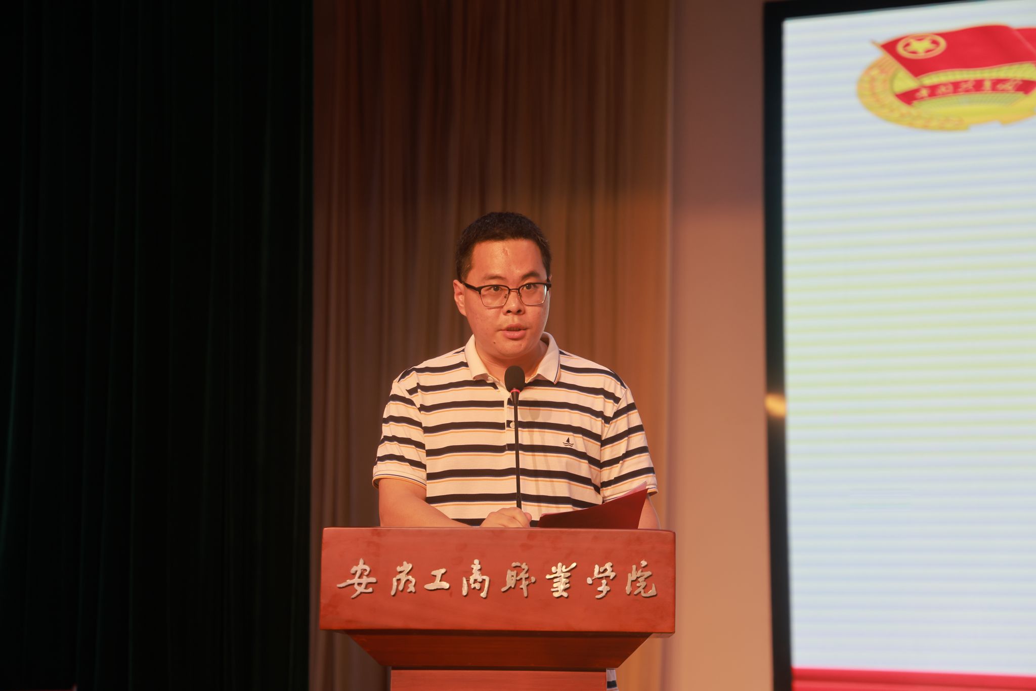 致辞结束后,学院领导和老师为第七届学生会干部颁发了聘书,希望他们能在今后的学习和工作中继续努力,不断进步。柳冰清同学代表学院第七届学生会干部发言,她回顾并总结了自己过去一年在学生会的经历,谈了自己的感想,对学院领导和老师的栽培表示衷心的感谢,对新一届的学生会成员表示祝贺,并激励他们破除困难,砥砺前行。