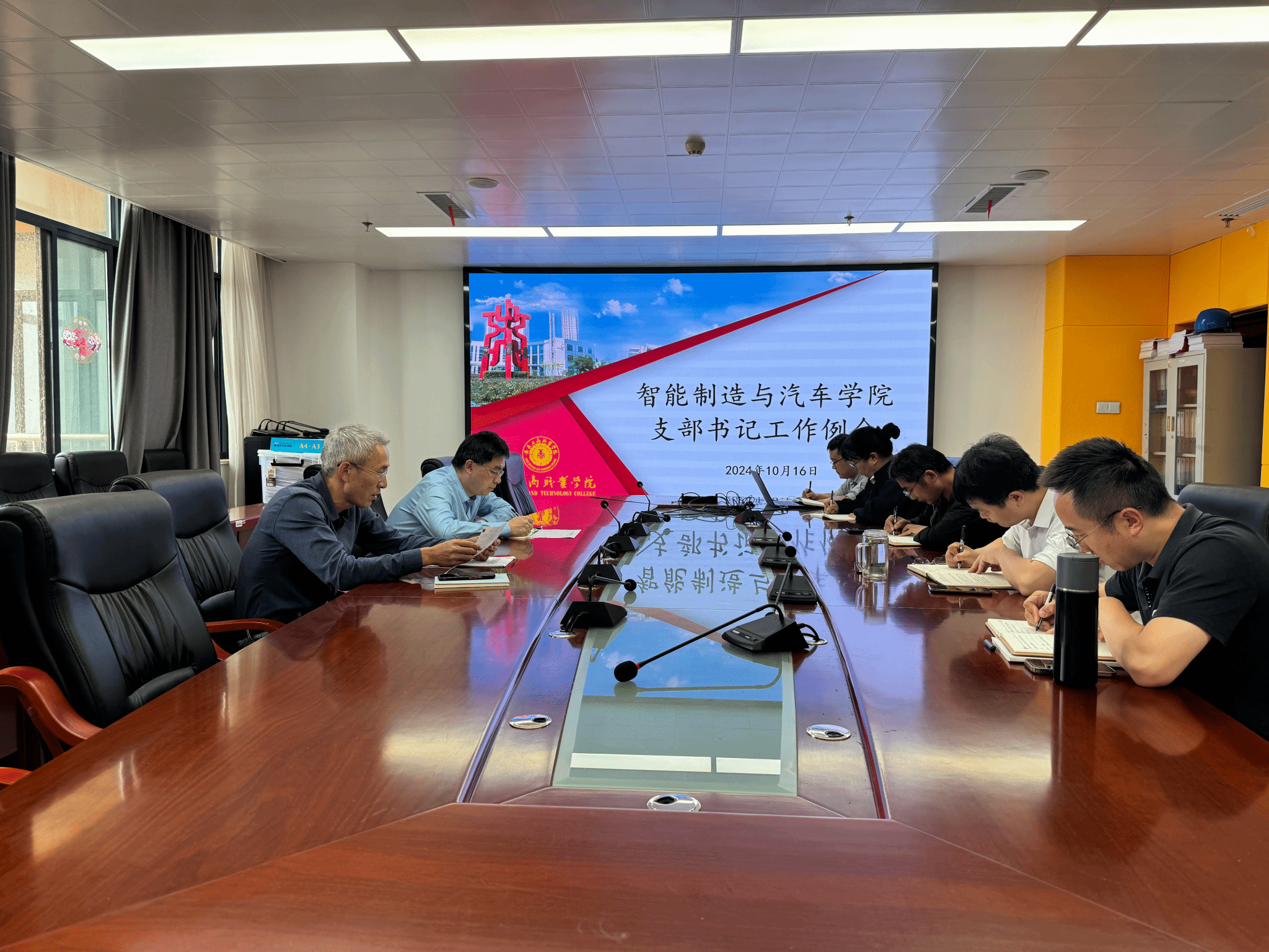 为深入学习贯彻党的二十届三中全会精神,扎实推进学院党建工作,10月16日中午,智能制造与汽车学院党总支在六号会议室召开党支部书记工作例会。学院党总支书记丁浩,党总支副书记盖昊宇,各党支部书记参加会议。