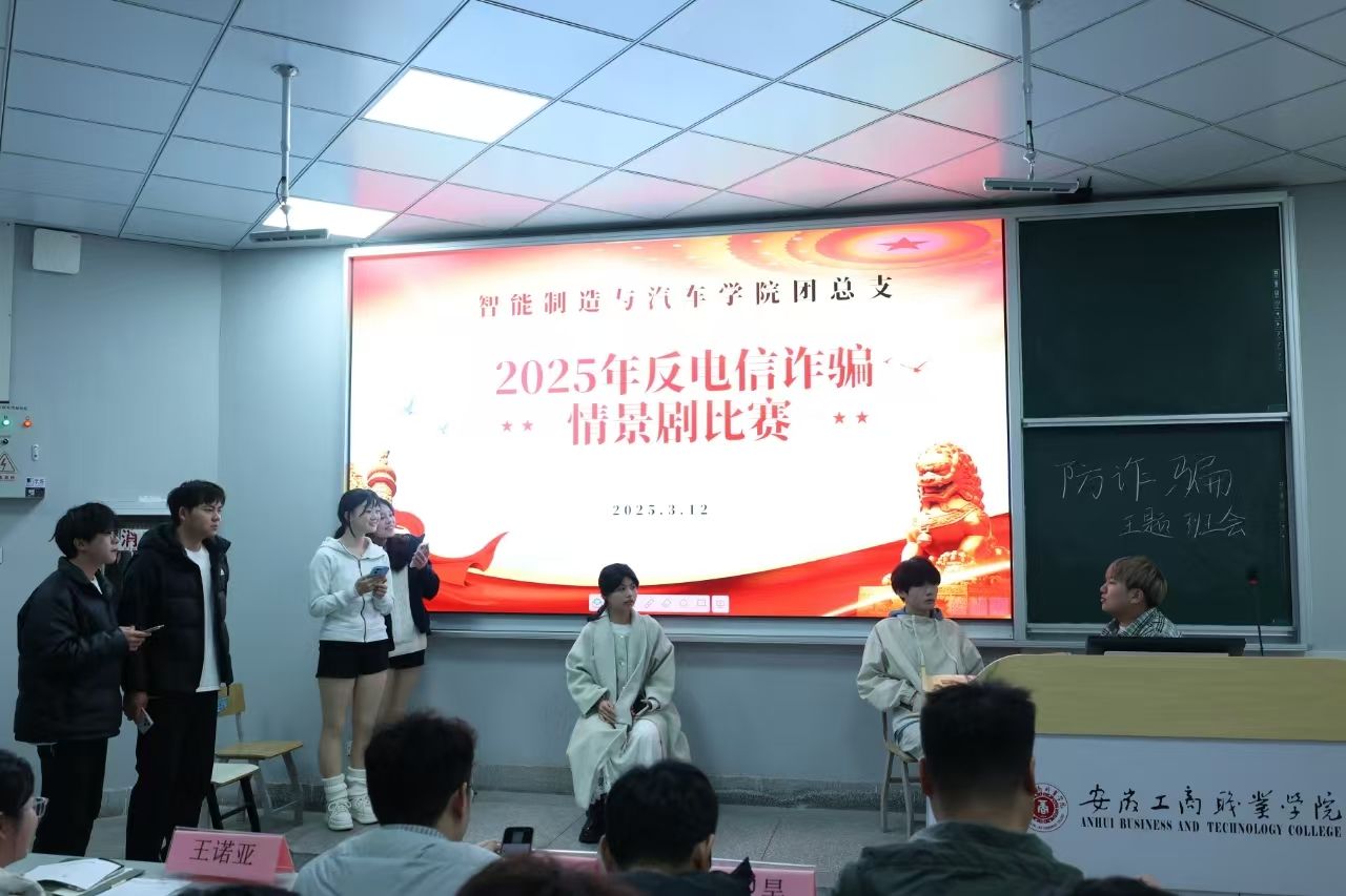 为切实提高学生的反诈意识和能力,3月12日,智能制造与汽车学院在9号多媒体教室举办了一场别开生面的反电信诈骗情景剧比赛。此次比赛由学院团总支主办,吸引了众多学生积极参与,为校园安全建设增添了浓厚的一笔。