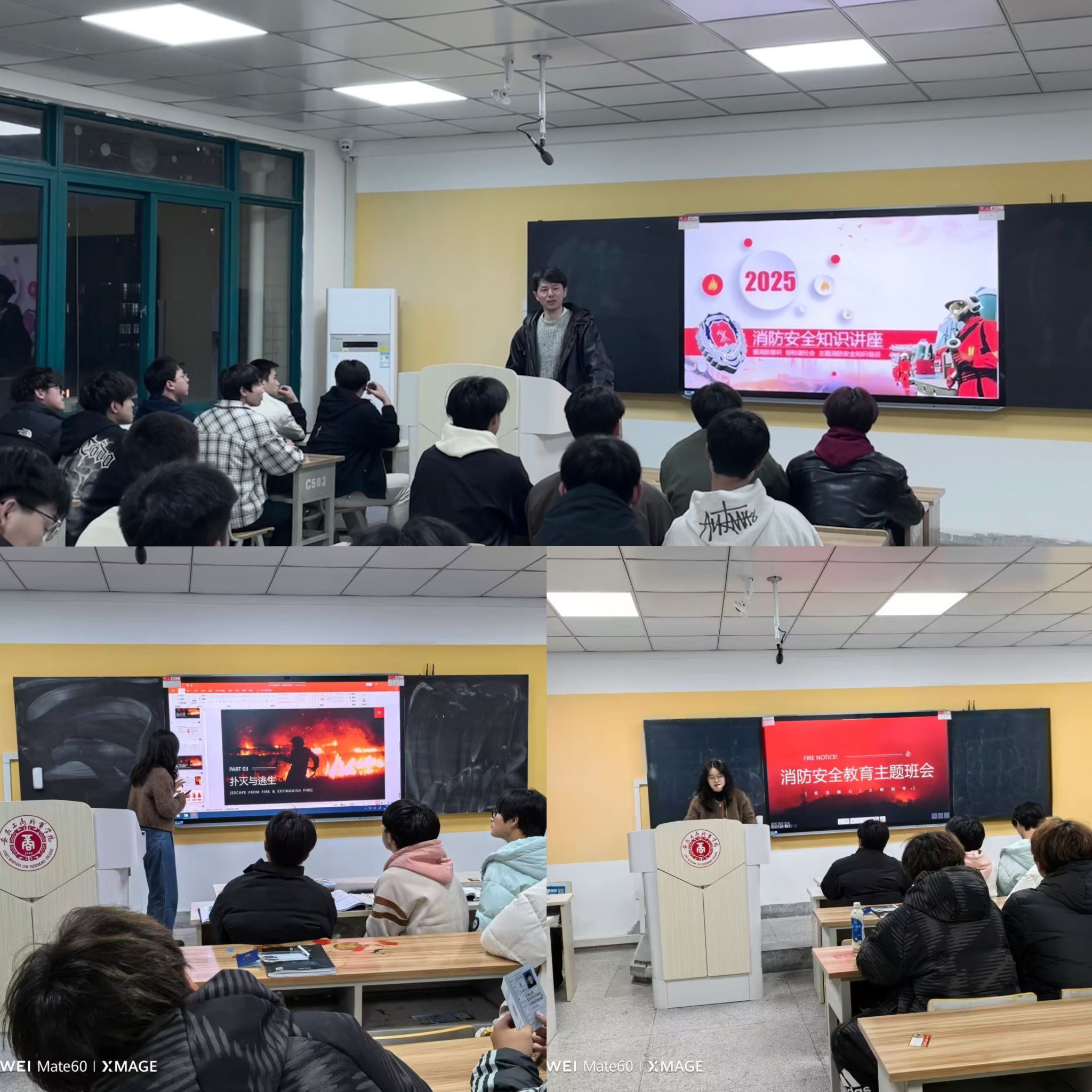 各班级围绕“消防安全无小事 雷锋精神伴我行”召开主题班会。班会上,辅导员结合公开课内容,组织同学们展开讨论。同学们踊跃发言,分享自己身边存在的消防隐患以及观看公课后的感悟。有的同学提到宿舍里违规使用大功率电器的现象,认识到其可能引发的严重后果;还有的同学表示学会了如何在紧急情况下正确逃生,受益匪浅。24级机电一体化技术五班的一个同学表示:“作为机电专业的学生,安全是未来职业的底线。这次学习让我不仅懂得自救,更想用专业知识帮助他人,这才是新时代的雷锋精神。”