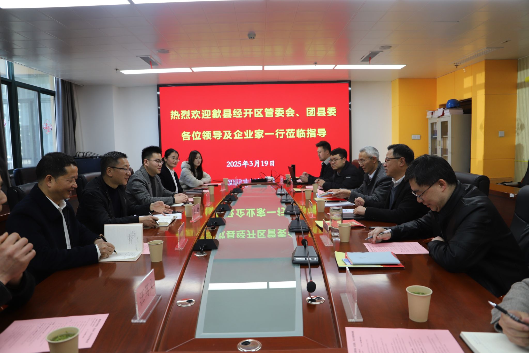 3月19日,歙县经济技术开发区管委会党群工作部部长余峰、团县委书记李晓东率歙县经开区多家企业组成考察团赴我校开展交流。学校党委委员、副校长胡捍东,智能制造与汽车学院党总支书记丁浩参加了交流活动。