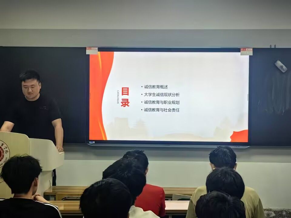 活动伊始,各班辅导员通过精心制作的PPT,深入浅出地为同学们讲解诚信的内涵、重要性以及在生活和学习中的具体体现。从古代曾子杀猪教子的诚信典故,到现代社会因诚信缺失引发的反面案例,辅导员生动地讲述让同学们深刻认识到诚信是立身之本、处世之道。在讲解过程中,辅导员还结合了专业领域的实际情况,举例说明在未来的工作中,如汽车制造的生产环节,任何一个数据的弄虚作假都可能导致严重的安全隐患;在智能产品研发时,诚信对待每一个实验结果,才是推动行业进步的基石,让同学们真切感受到诚信在未来职业发展中的关键作用。