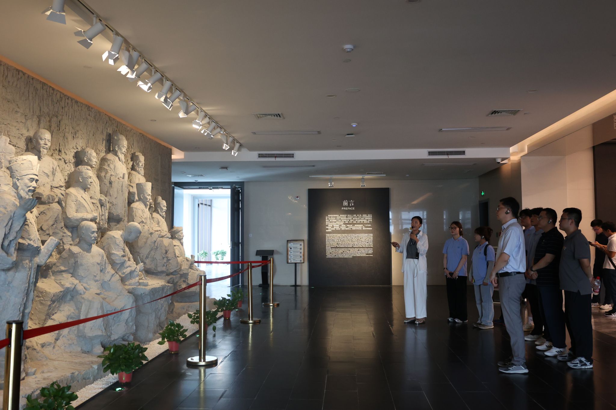 座谈会后,实践团队一行走进徽州历史博物馆,仿佛穿越时空,回到了那个徽商鼎盛的年代。馆内“天下徽州”四个大字,彰显了徽商在当时社会文化中的重要地位。在讲解员的生动解说下,实践团队成员们认真地了解到从新石器时代到民国时期的徽州历史,从不同时代陶瓷器到精美的徽州三雕,从珍贵的徽州文书到生动书画长卷,在一件件展品中感受徽文化的博大精深和徽州人民的智慧与汗水感受到徽商“贾而好儒”的独特气质和徽文化的深厚内涵。在参观过程中,《梦里徽州——新安江风情》画卷尤其引人注目,它以新安江沿岸风物为主线,展示了民国时期徽州风俗文化,曾入选上海世博会城市足迹馆展出。大家沉浸在画卷虚拟的美景中,仿佛自己置身于新安江水岸上。