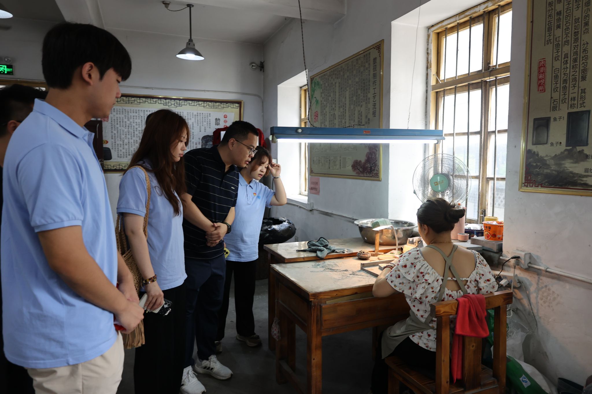 7月10日上午,实践团队一行来到老胡开文墨厂,厂内弥漫着古朴的墨香。团队成员跟随工作人员的脚步,了解徽墨的制作工艺。从选料、制胶、和料,到捣杵、成型、晾晒、描金等多道工序,每一步都凝聚着匠人们的智慧与汗水。在这里,大家看到了传承数百年的制墨技艺,触摸到承载着文化记忆的墨锭,深刻认识到徽墨不仅是书写工具,更是中华民族传统文化的瑰宝。非遗传承人坚守传统工艺,不断创新发展的精神,也激励着团队成员在未来的学习和生活中追求卓越、勇于创新。
