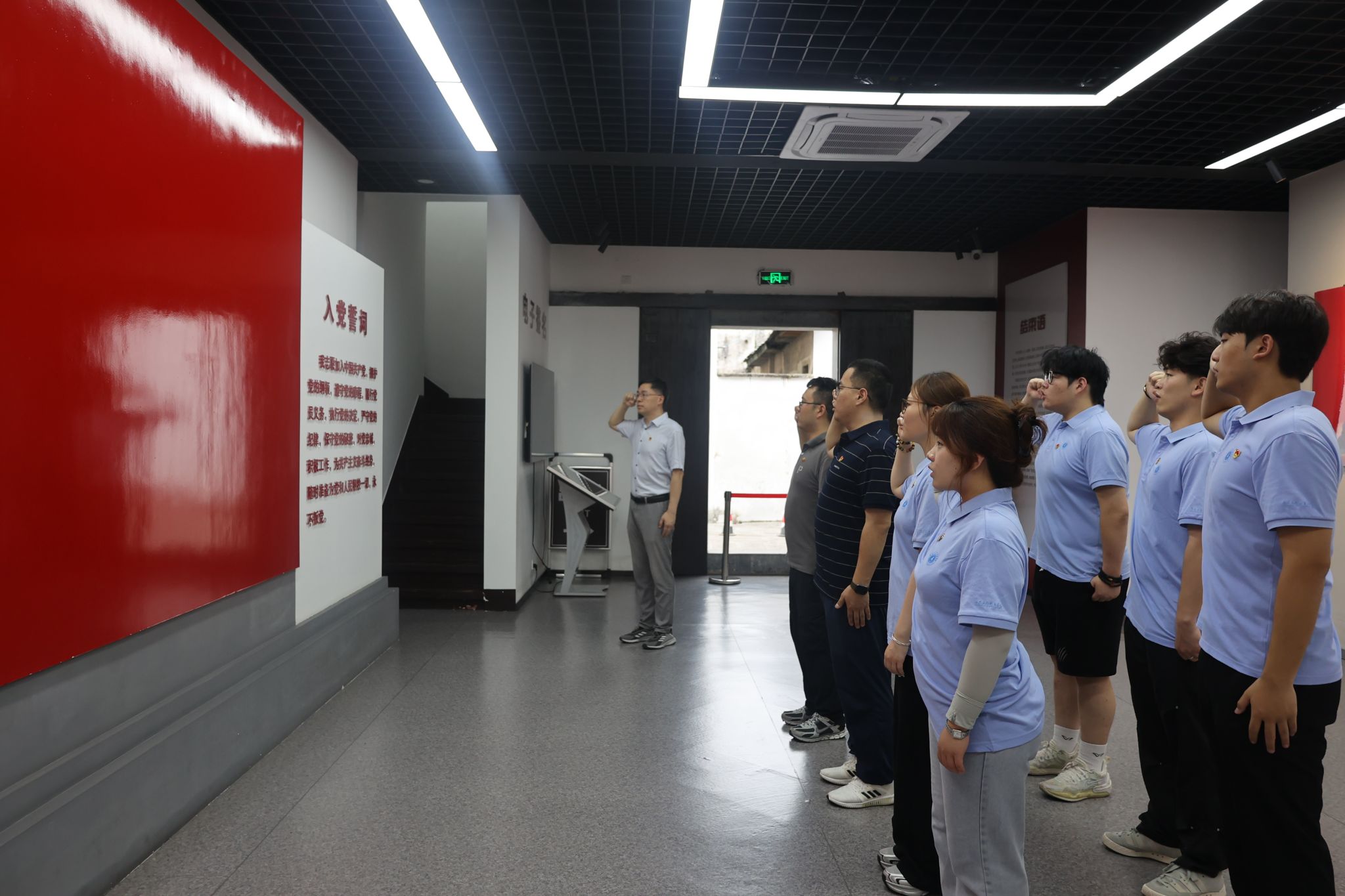 结束徽州历史博物馆参观后,实践团队一行歙县廉政三示教育基地参观学习。实践团队成员依次参观了廉政三示教育基地的序厅、历史昭示厅、陶子示范厅、纪法警示厅、尾厅等五个展厅。实践团队成员认真听讲解员讲述古徽州历史上的清官、御史等勤廉事迹,沉浸式的廉政教育让成员们深刻认识到,廉洁自律不仅是党员干部的准则,更是新时代青年应坚守的价值底线。在廉政三示教育基地大厅,实践团队全体党员面对鲜艳的党旗,在学院党总支副书记盖昊宇的领誓下,一起重温入党誓词。