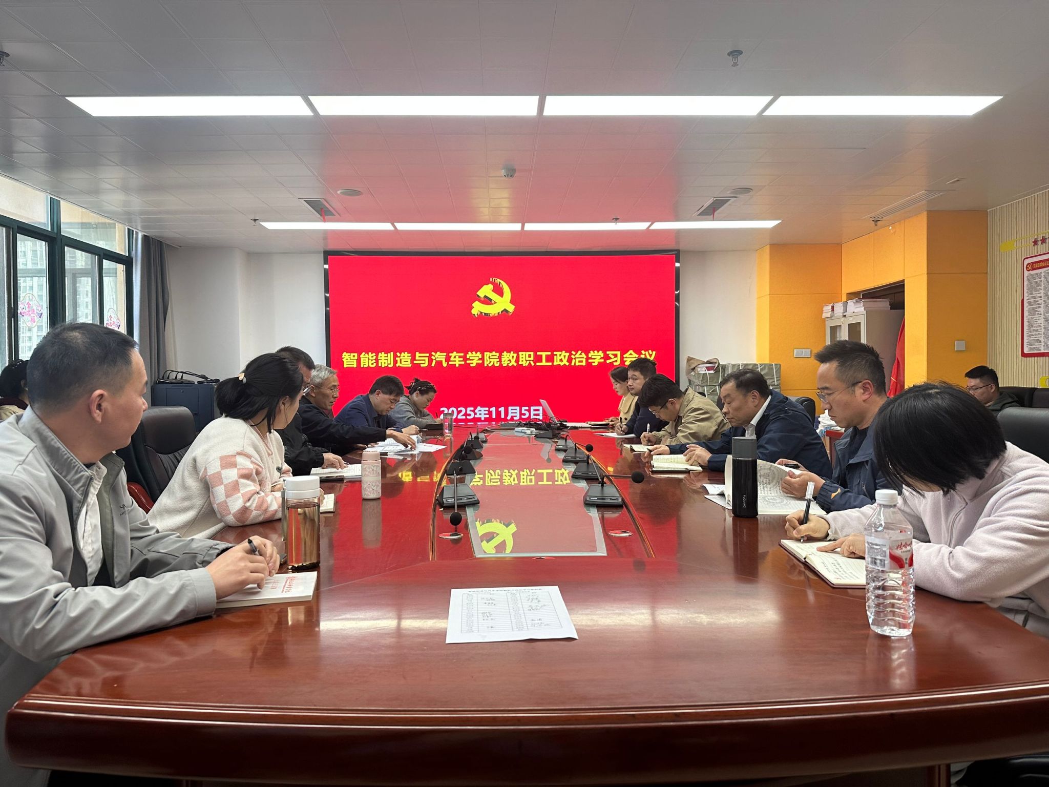 11月5日下午,智能制造与汽车学院党总支召开全体教职工政治理论学习会,会议由党总支书记丁浩主持,全体教职工参加会议。