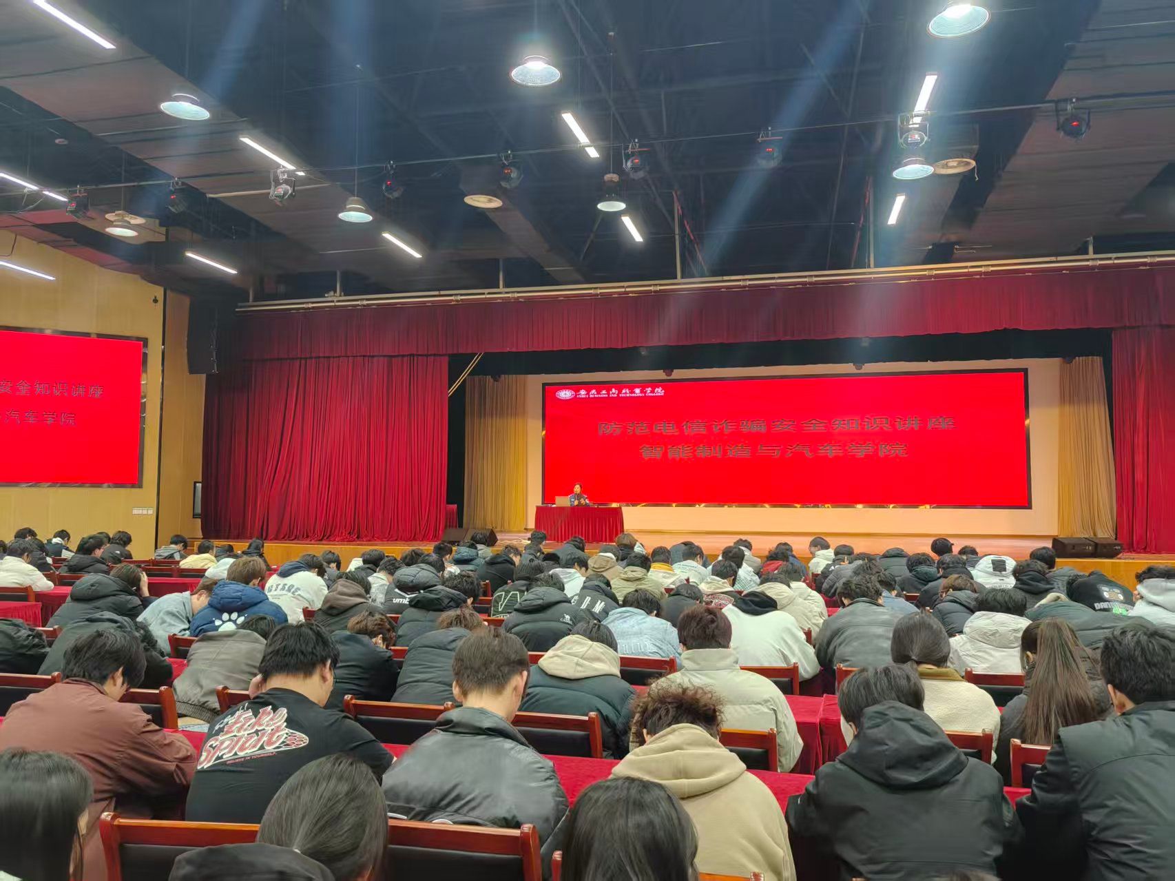 为切实增强学生防范意识,筑牢校园反诈防线,2025年12月3日,智能制造与汽车学院在大学生活动中心举办“慧眼识诈 安全成长”防电信诈骗专题讲座。讲座直面当前高发的电信诈骗威胁,旨在全面提升学生识骗防骗能力,守护个人财产与心理健康。