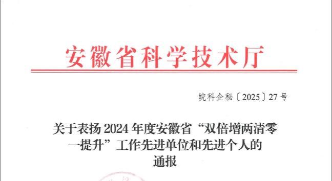 近日,安徽省科技厅发文表彰了2024年度安徽省“双倍增两清零一提升”工作先进单位与先进个人,智能制造与汽车学院盖昊宇老师作为省级“科技副总”获评先进个人。