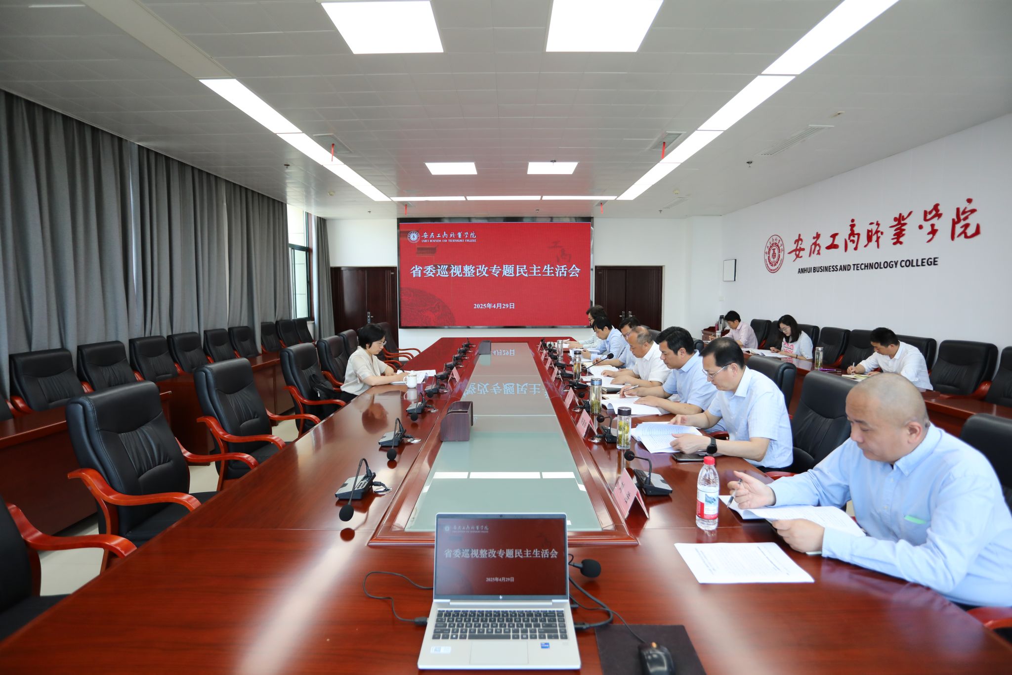 4月29日上午,我校在综合楼第三会议室召开党委领导班子省委巡视整改专题民主生活会。省委教育工委组织干部处三级调研员彭璐到会指导,校党委书记齐建平主持会议并总结讲话,党委班子全体成员参加会议,校办公室、组织人事处及巡视整改工作办公室有关人员列席会议。